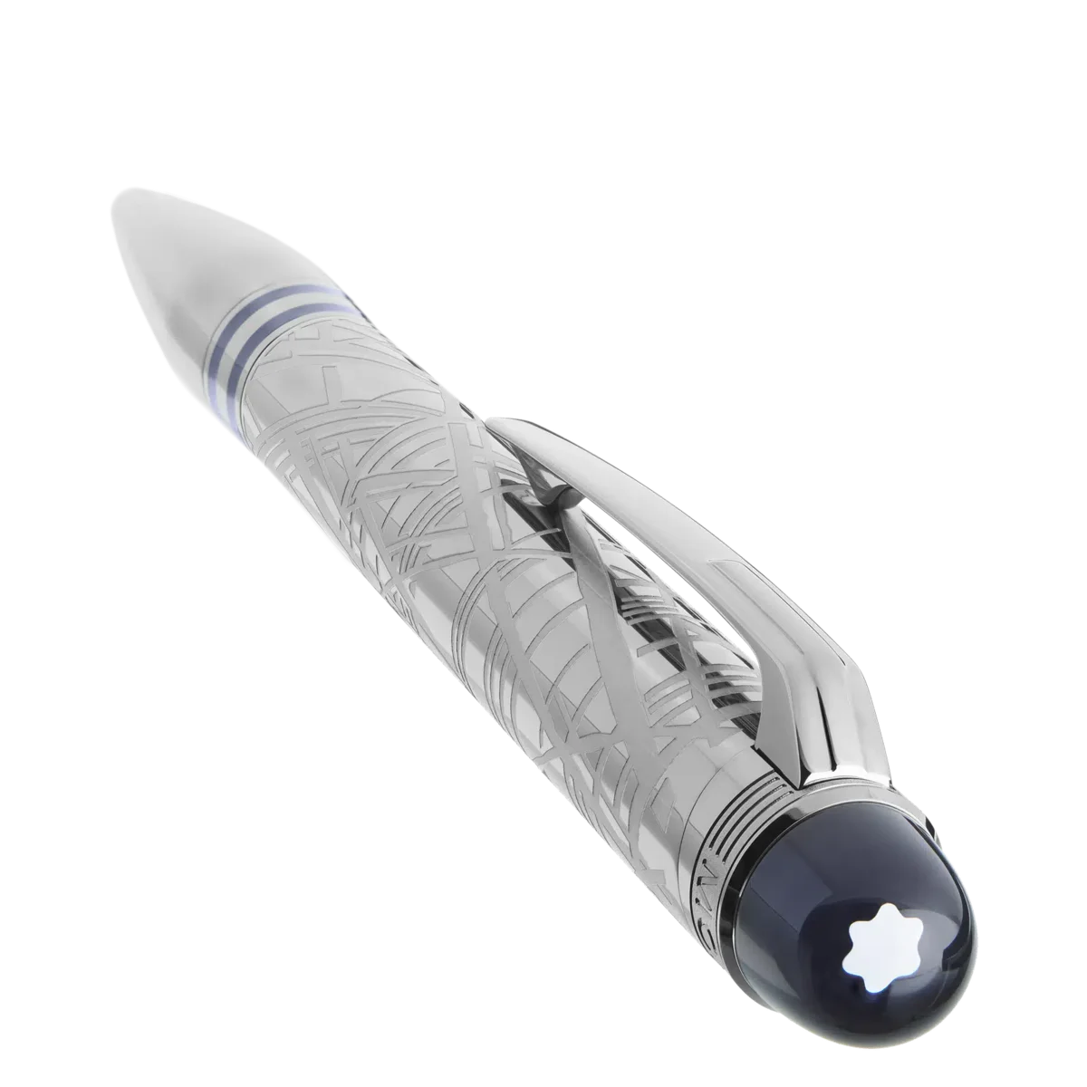 StarWalker SpaceBlue looks beyond planet Earth and turns towards the stars and the galaxy. This new StarWalker collection brings a new look for the metal barrel, with a design that recalls the intricate structures of the Widmanstätten Pattern, one of nature’s most hypnotic creations. All metal parts are coated in dark ruthenium, accompanied by a deep space blue subdome on the cap top, recalling the hues of a starry sky, over which the Montblanc emblem floats.