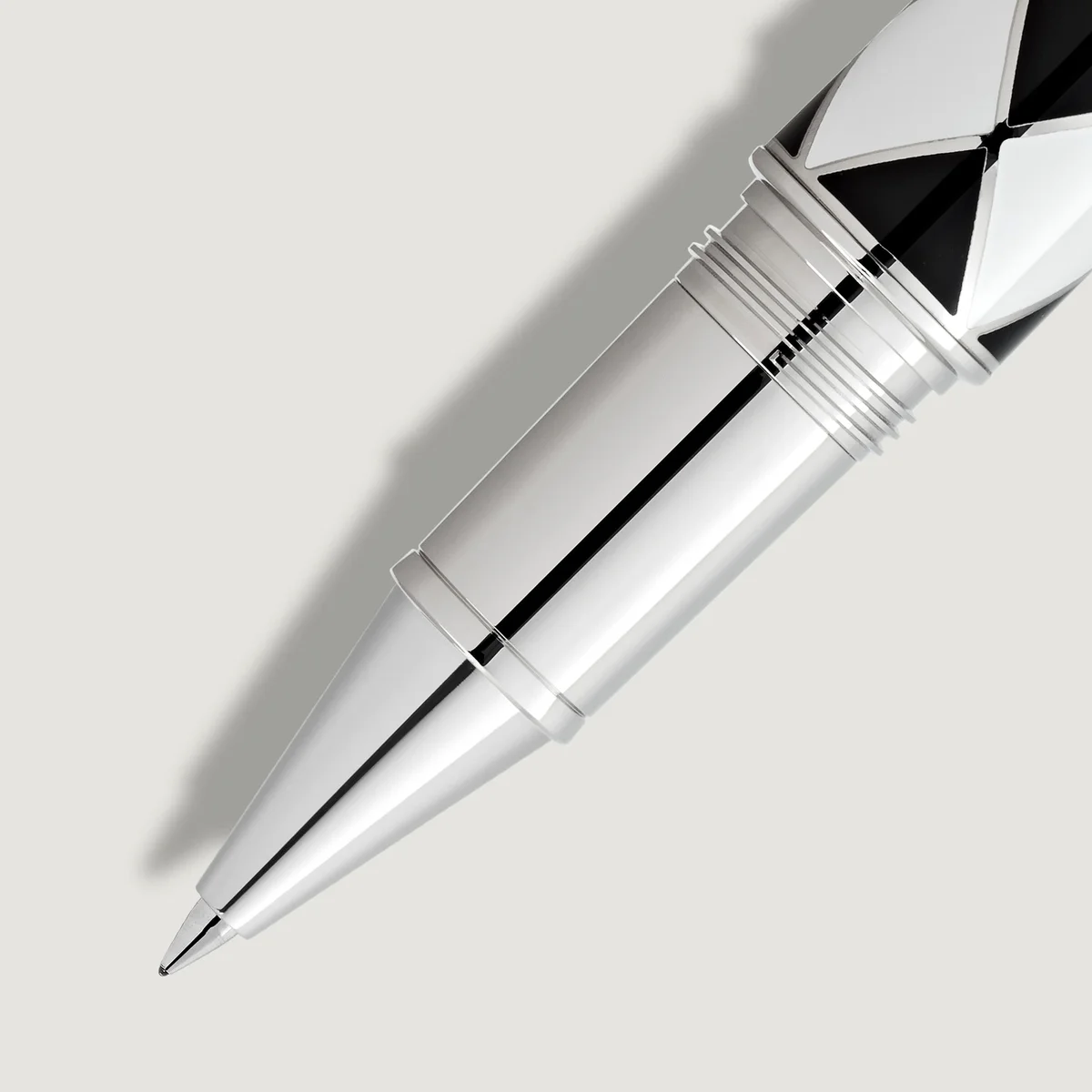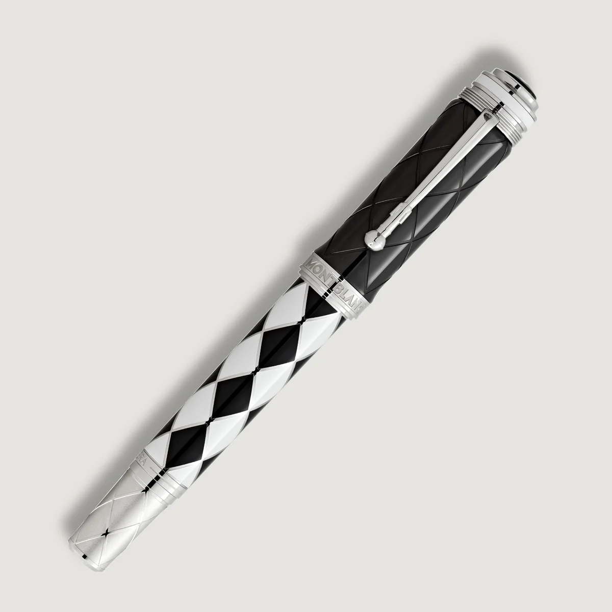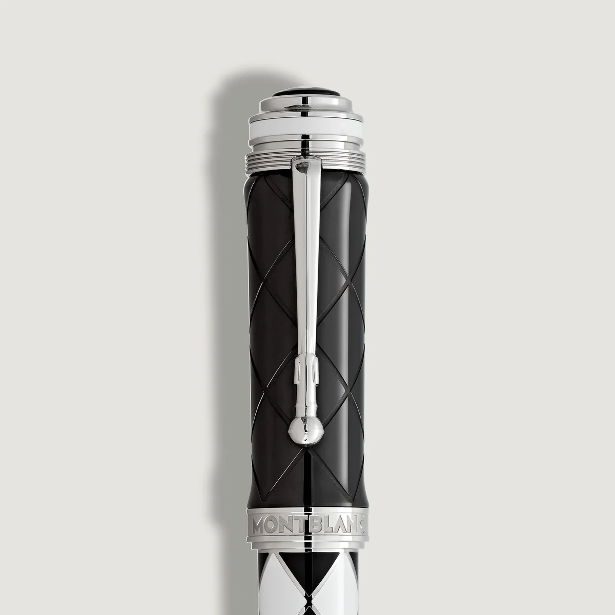 In the rich history of rock music few names have shone out as consistently as that of Queen. With a career spanning over five decades, the band is one of the world’s most successful of all time. During this period, Queen came to embody the power of musical creativity and most of their songs topped the charts for weeks on end. They created something like their own musical universe, made up of a combination of hard rock, glam rock, pop, funk and opera, shattering the boundaries between the genres.Montblanc dedicates its Great Characters Homage to Queen Limited Edition 1975 to these icons of rock music, inspired by the album A Night At The Opera.Black and white. No other colour combination describes such stark contrast and no other could better symbolise the extent of Queen’s musical universe. For a time, The Black and the White was even pencilled in as the title of their second studio album and was the motto for Mercury’s spectacular birthday party eleven years later. The Limited Edition 1975 also appears in this contrasting guise. The band’s fourth studio album, however, surpassed everything which had gone before and is considered the most elaborately produced album of the 20th century. The four artists who performed on it have gone down in history: Freddy Mercury, the charismatic front man with a vocal range spanning several octaves and featuring a rich vibrato; Brian May, the virtuoso guitarist and his unmistakable electric guitar sound; John Deacon, the highly creative bass player; and Roger Taylor, the rhythmic heart of the band. As a nod to these four exceptional musicians, their stylised portraits are immortalised on the black cap of the writing instrument, based on the artwork of the iconic Queen II and Hot Space covers.The album A Night at the Opera – and in particular its centrepiece Bohemian Rhapsody – exemplifies Freddie Mercury’s dream of creating a record of epic proportions. The single’s six-minute, extravagant arrangement combines piano ballads, opera and rock, interspersed with layer upon layer of operatic, cascading vocals and quirky references to such characters as Galileo or Scaramouche, a figure from the Commedia dell’Arte. Mercury himself, known for his flamboyant stage costumes, would often slip into the guise of another Commedia dell’Arte figure, the Harlequin. His famous tight-fitting unitard with its black-and-white diamond pattern underlined his unconventional stage persona and inspired the rhomboidal design of the barrel. The edition also honours Brian May and his amazing guitar playing, which was so pivotal to the sound of the album, by giving the platinum-coated cone its distinctive look. This is reminiscent of the volume and tone control knobs on May’s famous electric guitar. The cone ring is embossed with the name of the album: A Night at the Opera. The year of its release, 1975, inspired the decision to limit the edition to 1975 fountain pens and 1975 rollerballs.The crown worn by Mercury during the closing rendition of God Save The Queen was the inspiration behind the silhouette of the cap top of the Limited Edition and is at the same time a metaphor for the majestic character of the band and its musical legacy. The platinum-coated clip is designed to resemble a microphone stand in reference to one of the hallmarks of Freddie Mercury’s live performances.