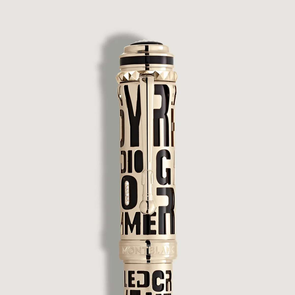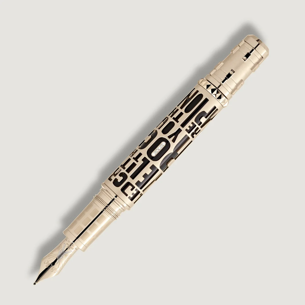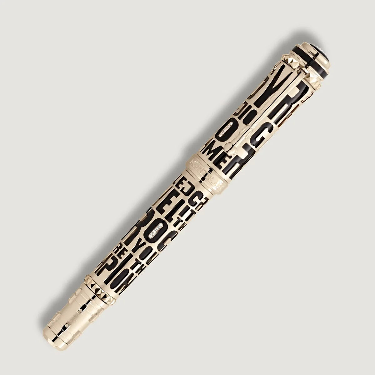 In the rich history of rock music few names have shone out as consistently as that of Queen. With a career spanning over five decades, the band is one of the world’s most successful of all time. During this period, Queen came to embody the power of musical creativity. They created their own musical universe, made up of a combination of hard rock, glam rock, pop, funk and opera, shattering the boundaries between the genres. Montblanc dedicates its Great Characters Homage to Queen Limited Edition 95 to these icons of rock music.Their appearance at the legendary 1985 Live Aid benefit concert in London is considered one of the greatest moments in the history of rock music. The six songs Queen played decorate the solid Au 750 signature gold skeleton overlay, contrasting with deep-black lacquer underneath: Bohemian Rhapsody, Radio Ga Ga, Hammer to Fall, Crazy Little Thing Called Love, We Will Rock You and the electrifying closing song We Are the Champions. The engraved pattern on the forepart is modelled on the stage design for that memorable concert.The only extravagant touch the frontman allowed himself, a studded armband and a matching belt, inspired the design of the cap and cone rings. A microphone stand inspired the design of the clip, representing Queen’s electrifying live performances. A crown – sometimes worn by Freddie Mercury during the closing rendition of God Save The Queen – was the inspiration behind the silhouette of the cap top.The design of the cone pays tribute, resembling the characteristic volume and tone control knobs of the electric guitar Brian May built himself. The drum pattern on the cone also honours founder member Roger Taylor, a brilliant drummer and composer.Four years after Freddie Mercury’s death, the original sound of his voice was heard again: the Made in Heaven album of 1995 included his final ever recording. The year of its release dictated the limited number of pieces, 95, while the LP cover – the silhouette of Freddie Mercury in one of his most iconic, triumphant stage poses – inspired the embossing on the handcrafted, bicolour, solid Au 750 gold nib.