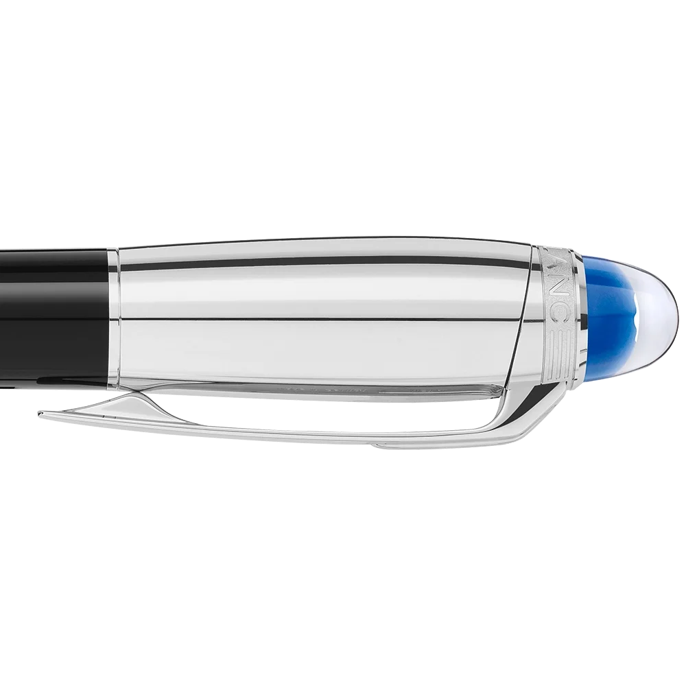 The new StarWalker is about walking amid the stars. It’s about exploring the cosmos and foreign galaxies. about being part of one of the most mysterious and powerful of human kind’s adventures: space exploration. The collection’s new design celebrates the immense emotion. described by all space travelers. of seeing our blue planet floating in the vast expanse of space. The unique StarWalker emblem technology features a blue translucent dome beneath the Montblanc emblem. reminiscent of the Earth emerging above the lunar horizon. The StarWalker Doué comes with a platinum-coated cap and fittings and a black precious resin barrel.