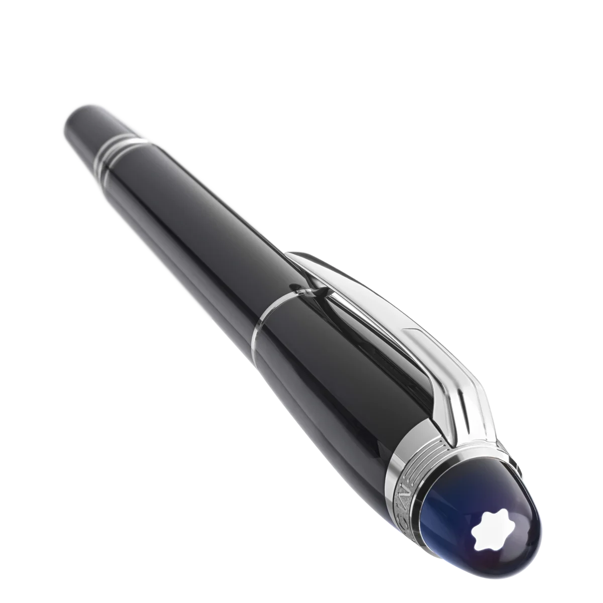 The new StarWalker is about walking amid the stars. It’s about exploring the cosmos and foreign galaxies. about being part of one of the most mysterious and powerful of human kind’s adventures: space exploration. The collection’s new design celebrates the immense emotion. described by all space travelers. of seeing our blue planet floating in the vast expanse of space. The unique StarWalker emblem technology features a blue translucent dome beneath the Montblanc emblem. reminiscent of the Earth emerging above the lunar horizon. The StarWalker Precious Resin comes with platinum-coated fittings and a black precious resin barrel and cap.