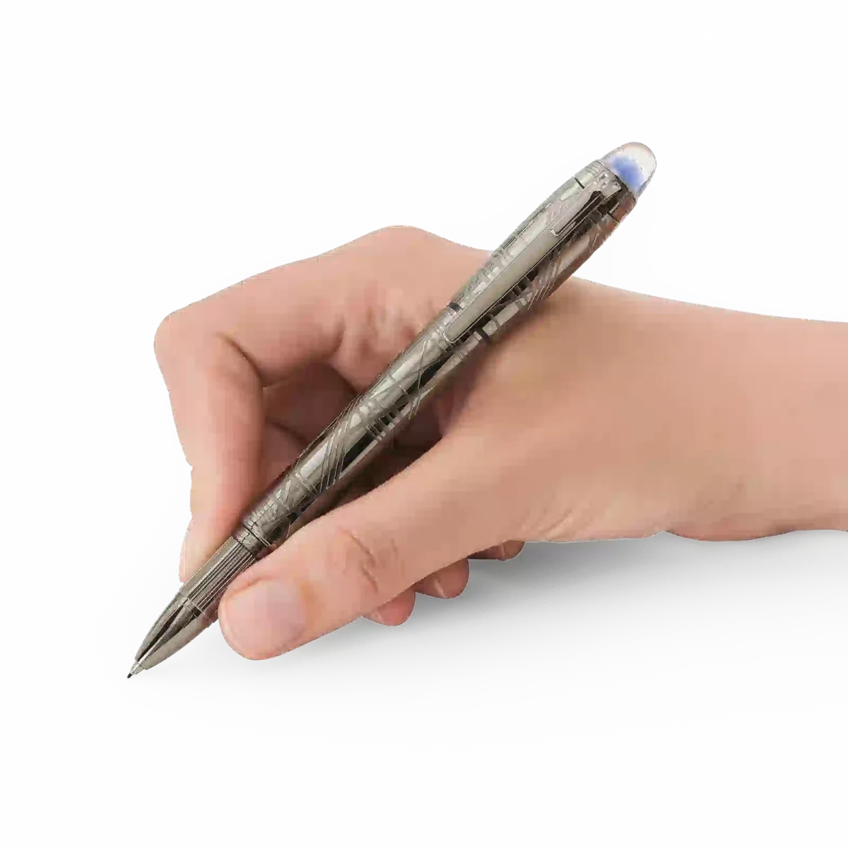StarWalker SpaceBlue looks beyond planet Earth and turns towards the stars and the galaxy. This new StarWalker collection brings a new look to the metal cap and barrel, with a design that recalls the intricate structures of the Widmanstätten Pattern, one of nature’s most hypnotic creations. All metal parts are coated in dark ruthenium, accompanied by a deep space blue subdome on the cap top, recalling the hues of a starry sky, over which the Montblanc emblem floats.