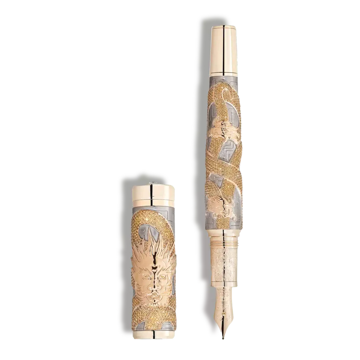 Montblanc dedicates a very special limited edition to a few dragons that have become some of the most honored in East Asian culture. The eleventh in the series features the Coiling Dragon Dragon. The majestic Coiling Dragon winds its body sinuously around the solid Au 750 white gold cap and barrel as a skilled and patiently created hand-engraving. Reflecting traditional Chinese philosophy, where yellow symbolizes the element of earth, and the dragon being associated with earth due to its control over weather and nature, the body is fully set with carefully selected yellow sapphires. To match the colour of the dragon’s body, its eyes as well as the cone are set with further yellow sapphires, while the dragon’s head and claws are made of solid Au 750 gold. A hand-engraved pattern, symbolising a Chinese knot for bringing good fortune, enriches the barrel of the edition. The hand-crafted, solid Au 750 gold, signature gold-coated nib set with a light yellow sapphire, bears a delicate engraving of a Chinese pavilion surrounded by water in honour of the mythical phenomenon Shen (蜃, meaning Mirage), a particular type of dragon. These structures serve as places of tranquillity and meditation. The design is further enriched with an engraving of the dragon’s head on the solid Au 750 signature gold forepart, while the cap top is crowned by the Montblanc diamond, surrounded by brilliantcut diamonds.