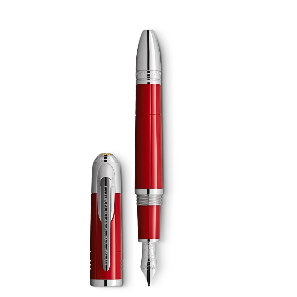 In 2021. Montblanc pays tribute to the visionary Enzo Ferrari: both motor racing driver and entrepreneur. he founded the legendary Scuderia Ferrari and established a global automotive empire whose name has become synonymous with superb quality and a passion for speed.Made from red precious resin. the edition symbolizes the beginning of Enzo Ferrari´s passion for motor racing. Its color is inspired by “Rosso 70 Anni”. a special red color representing various iconic red tones throughout the years. first developed to celebrate the 70th birthday of the Scuderia Ferrari.The cap top is crowned with a Montblanc emblem embedded in a metal grid on a yellow surface. paying homage to Ferrari’s birth place. Modena Italy. The prancing horse. the famous emblem of Ferrari cars. is depicted on the back of the cap. The metal clip is adorned with a famous quote by Enzo: “You cannot describe passion. you can only live it.” The cone shows two important dates in the early career of Enzo Ferrari. The handcrafted Au 585 / 14K solid gold nib is embossed with the image of a “Ferrari 250 GTO” steering wheel and one of Enzo´s nicknames – “Pilota”.