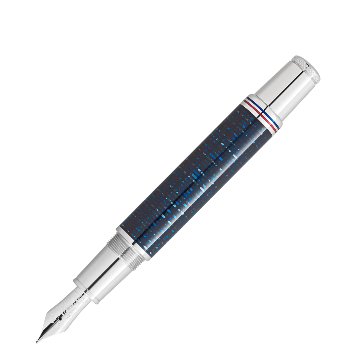 Certain novels go down in literary history and, at the same time, come to symbolise an entire epoch. F. Scott Fitzgerald’s ‘The Great Gatsby’ is one such gem of modern American literature. Published in 1925, the novel paints a fascinating picture of the Jazz Age and the Roaring Twenties, a time of unprecedented affluence and self-indulgence. Pulsating New York City, the opulent mansions of Long Island and the dazzling high society parties are the backdrop to the story of Jay Gatsby, a mysterious millionaire, who will stop at nothing to regain the affections of the lost love of his youth, Daisy Buchanan.The dazzling New York of the Gatsby era, where the sparkling Art Deco skyscrapers in the blue evening skies inspired the design of the Great Characters Homage to The Great Gatsby Special Edition. Created as a nod to an early Montblanc writing instrument of the Art Deco era, the surface of the barrel, fashioned using a special technique, seems to reflect the booming city’s brightly lit high-rise facades at night. No fictional device, but actually shining like the green light on the dock at Daisy’s house in ‘The Great Gatsby’, the fluorescent Montblanc emblem in the cap top captures and stores light during the day, so that it glows in the dark. The apparent power of money is symbolised in the edition by the platinum-coated clip which takes the form of a money clip. Its rounded opening is resplendent with the initials of Jay Gatsby as a rhomboidal gold coated Art Deco monogram. The myth of the American dream and the design of the often stylish hip flasks of the Art Deco period are referenced by the cone which imitates the engraved screw cap of a flask and the fine rings in the colours of the American flag encircling it. The essence of the American dream fulfilled is disclosed when removing the cap of the edition and glimpsing the embossed solid Au 585 rhodium-coated gold nib. This is decorated with an image of Jay Gatsby’s sumptuous car, enthusiastically described by F. Scott Fitzgerald as being of ‘a rich cream colour, bright with nickel, .. and terraced with a labyrinth of wind-shields that mirrored a dozen suns.’