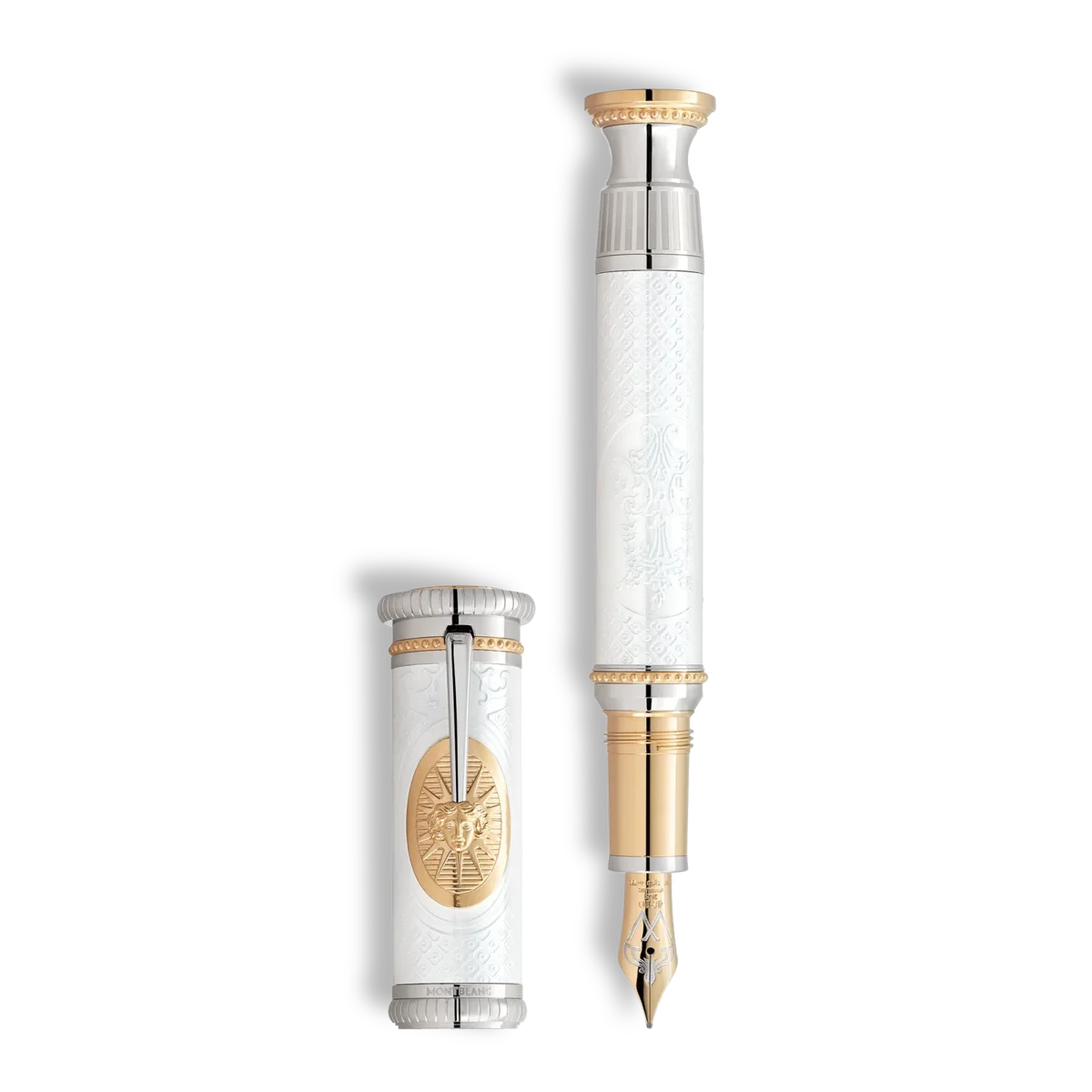 With the A Journey through Château de Versailles Collection Montblanc takes a tour through this baroque masterpiece in celebration of the Versailles world heritage site. The Limited Edition 479 honours in particular its splendid interior and the sumptuous private royal chambers. Louis XIV liked to retire to his private apartments to enjoy the view of the central marble courtyard. Under Louis XV, these apartments were remodelled and the magnificent King’s Corner Room was created, now famous for some of the most exquisite rocaille works in the palace. In keeping with the monarch’s exquisite taste, white stucco contrasts with flamboyant gilding and rocaille to quite magical effect in the sparkling light from the crystal chandeliers. White and gold – this regal colour scheme has also found its way into the Limited Edition 479: white translucent lacquer contrasts beautifully with the solid Au 750 yellow gold, partly platinum-coated fittings. The expertly executed fine guilloche pattern underneath the lacquer on the cap and barrel echoes beautifully the chamber’s rocaille ornaments. The leading cabinetmakers in France created highly elegant furniture for the prestigious interior, each piece artfully embellished with gilding and inlays of mother-of-pearl, polychrome marble and precious stones from all corners of the globe. As pieces created for the Versailles estate, the furnishings bear the letters ‘VV’ – as does the handcrafted solid Au 750 yellow gold nib. It is adorned with a fine engraving of precisely the same mark, together with the royal crown. In honour of the ‘Sun King’, as the monarch has subsequently been referred to, the image of the sun is encountered throughout the palace in numerous representations and allegorical allusions to the ancient Greek god. The sun also takes centre stage on the Limited Edition 479. A work of masterful craftsmanship, the clip ends in an elaborate depiction of Apollo’s head encircled by the rays of the sun and set in a solid Au 750 yellow gold plate. The cap top is crowned with the Montblanc emblem in lustrous mother-of-pearl, embedded in solid Au 750 yellow gold.Since secrecy was a central element of power at court, the Sun King used special encryption systems of letters and numbers known as the ‘Grand Chiffre’ and ‘Petit Chiffre’. They preserved the confidentiality of his military and diplomatic communications and simultaneously conjured up an aura of exclusivity and mystery. According to this system, the number 479, the limitation of this edition, stood for no less than the king himself: ‘Le Roy’.