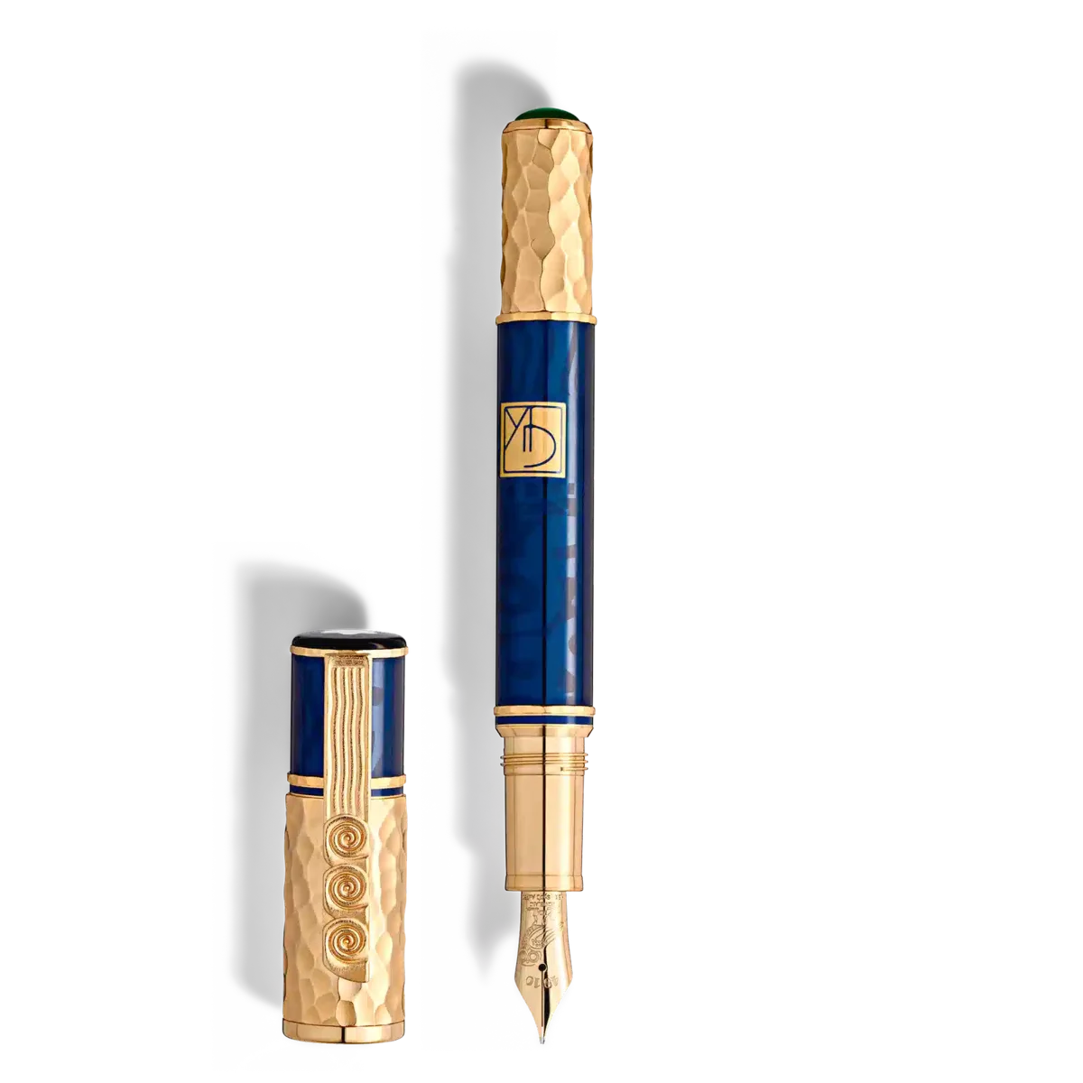 Great artists throughout history have expressed the human experience in a universal language of form and beauty. The Montblanc Masters of Art Collection honors their eternal contribution to the quest for perfection in art – a quest Montblanc both celebrates and participates in. One artist whose vision helped shape Viennese Art Nouveau and the Golden Age is Gustav Klimt. The Montblanc Masters of Art Homage to Gustav Klimt Limited Edition 4810 celebrates his artistic beginnings in the Vienna Secession and highlights elements from his masterpieces Pallas Athene and The Kiss in its design. In his rebellion against stereotypical concepts in art and society, Gustav Klimt was a pioneer of the avant-garde. He fused realistic representation, ornamentation and abstraction in a style that reached its culmination in his large scale, subtly sensual paintings of women. One of his first paintings to place equal value on the ornament and the sitter was a portrait from 1902 of his partner and muse Emilie Flöge, depicted in a dreamy, almost mystical blue. This artwork provided the blue tone used in the Montblanc Masters of Art Homage to Gustav Klimt Limited Edition 4810. The circles, swirls, triangles and lines shimmering through the translucent, dark-blue lacquer of the writing instrument come from his famous painting The Kiss, in which two lovers seem to dissolve into ornamental, geometric forms through the power of emotion. Composed of translucent blue lacquer and yellow gold-coated hammered metal, the cap and barrel of the writing instrument make effective use of complementary colors in reference to the famous works of Gustav Klimt’s Golden Phase, including Adele Bloch-Bauer I, the Stoclet Frieze and The Kiss. Klimt used a new technique to enrich his colors with individual sections of gold leaf, creating the impression of precious stones set in gold. In the Limited Edition 4810, the yellow gold-coated hammered cone is set with a synthetic green spinel, the color evoking spring, the season of new beginnings. Klimt’s Secession monogram, a gold-colored tampon print of his initials, GK, is a tribute to his achievements for the Vienna Secession. The clip of the Homage to Gustav Klimt Limited Edition 4810 is specially designed with reference to Gustav Klimt’s Pallas Athene. Since Athena is the goddess of both war and the arts, she is depicted launching the struggle for artistic freedom. The slightly curved lines ending in three spirals on the yellow gold-coated clip correspond to the decoration on the forged metal frame. The handcrafted solid Au 750 yellow gold nib is finely engraved with an owl, which symbolized knowledge, wisdom and insight and was considered the faithful animal companion of the Greek goddess Athena. The engraving is both a reference to Gustav Klimt’s painting of Pallas Athena and to the Secession building, whose facades are decorated with owl sculptures.