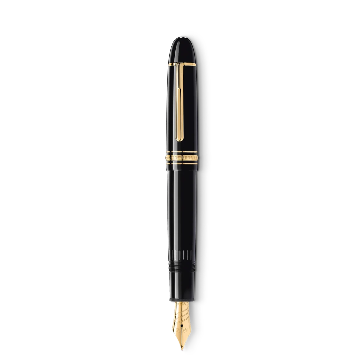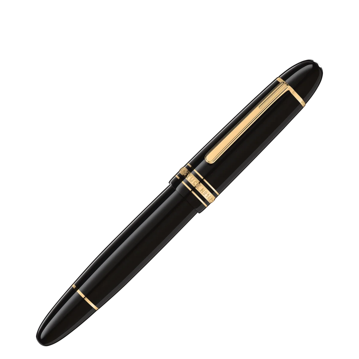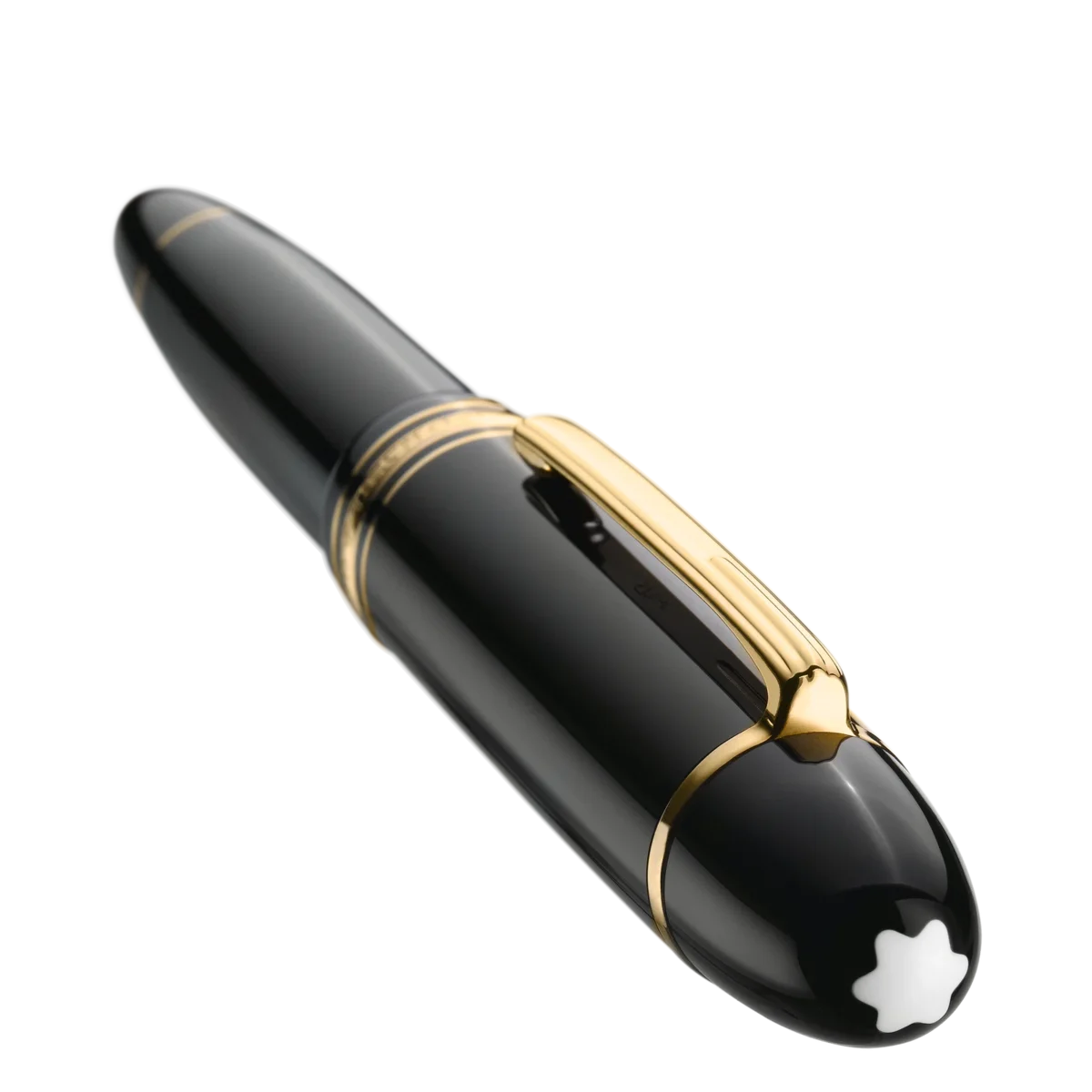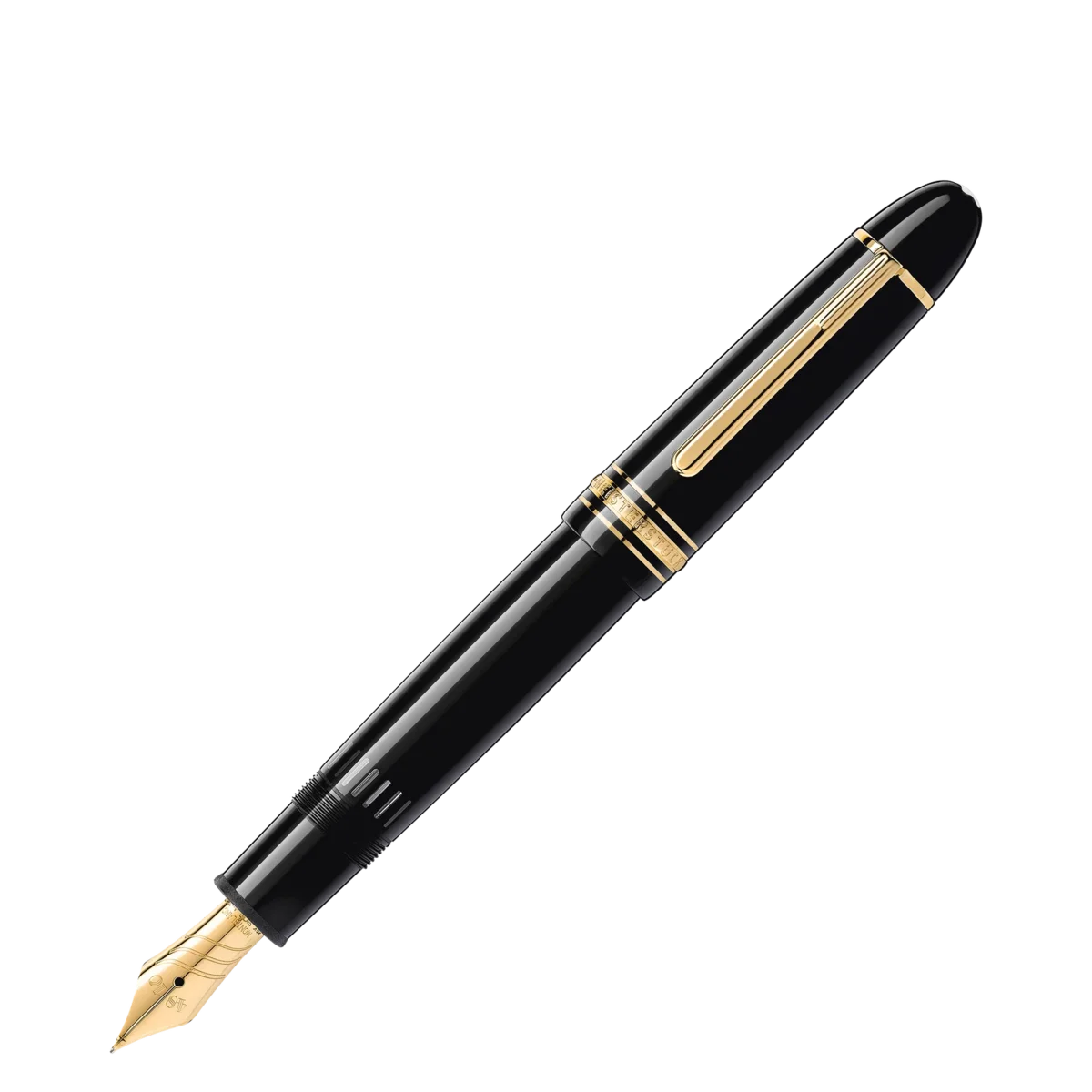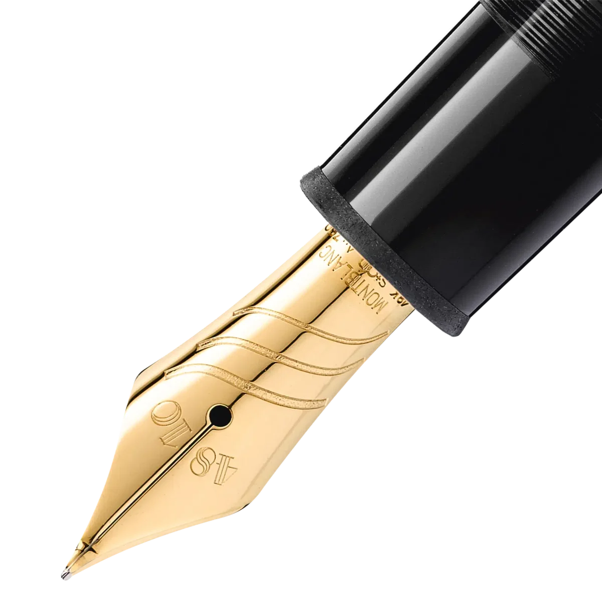Montblanc Meisterstück 149 Gold-coated collection is a design that writes history. Introduced in 1924, a word meaning “Masterpiece”, the Meisterstück has become one of the symbols for high quality luxury. The cap and barrel are crafted in black precious resin featuring the iconic white Montblanc emblem inlaid in the cap top. The fountain pen is crowned with the innovative curved nib, hand-crafted in Au750 solid gold and garnished with three delicate parallel lines; a symbol inspired by calligraphy movements. The curved nib allows a variety of writing styles and line widths, depending on the angle and the orientation at which the writing instrument is held.