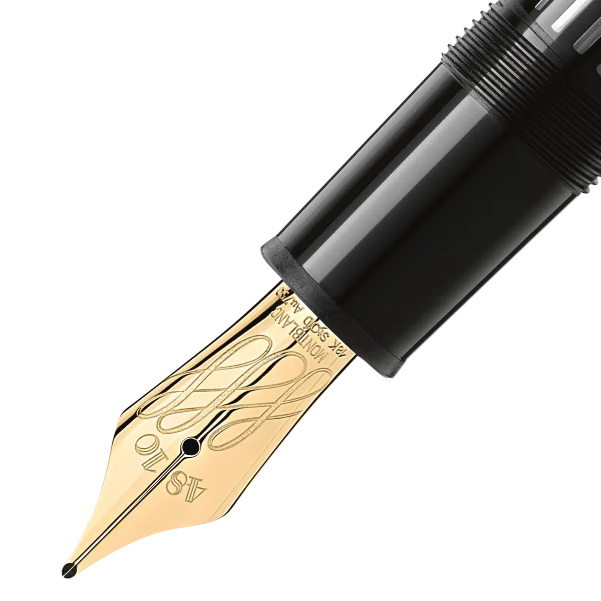 The Montblanc Meisterstück LeGrand Gold-coated collection is a design that writes history. Introduced in 1924, a word meaning “Masterpiece”, the Meisterstück has become one of the symbols for high-quality luxury writing. The cap and barrel are crafted in black precious resin featuring the iconic white Montblanc emblem inlaid in the cap top. The fountain pen is crowned with an innovative flexible nib, handcrafted in Au750 solid gold and finished with a delicate triple 8; a symbol inspired by calligraphy movements. The flexible nib allows a multitude of individual writing styles and line widths, which can range from extra fine (0.3 mm) to double broad (1.6 mm) depending on the pressure applied.