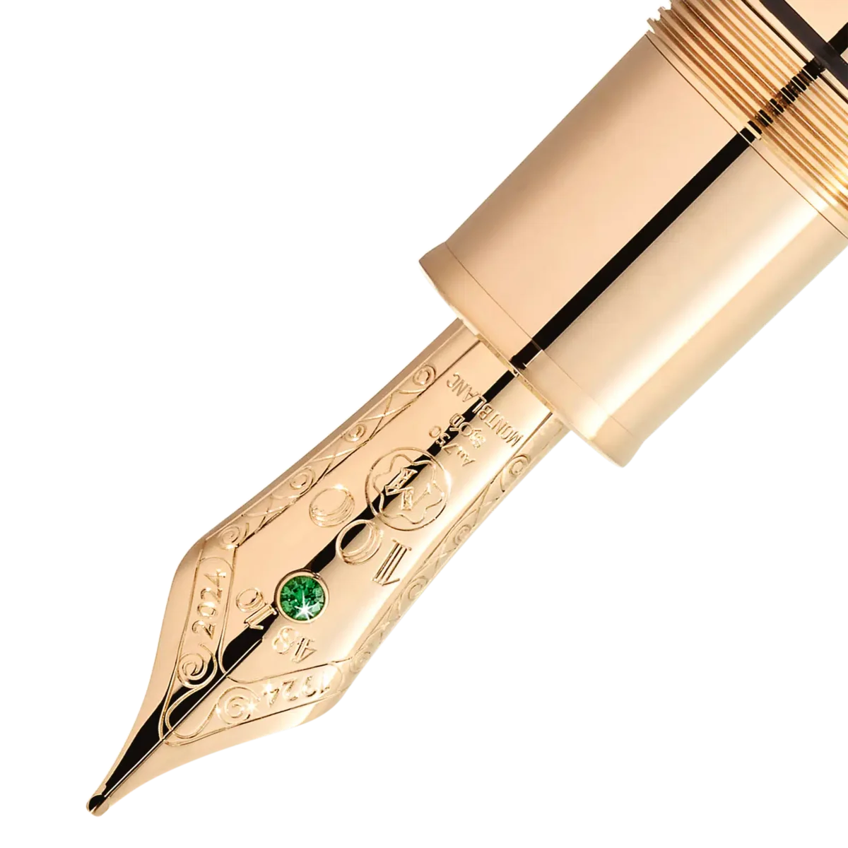 Since its launch in 1924, Montblanc’s Meisterstück has been widely regarded as the quintessential fine writing instrument, symbolizing refined taste and a bold extension of oneself. Whether used to pen a love letter or sign a historical document, the Meisterstück has left an indelible mark on the pages of history. To honor this milestone, Montblanc delved deep into its archives and created the Meisterstück Origin collection, paying homage to the brand’s rich history and heritage. The collection draws inspiration from early designs found in our archives, as well as design features featured on the earliest Meisterstück editions, capturing the founding spirit and infusing it with a modern flair.This Limited Edition is expertly crafted in skeletonized solid Au750 Signature Gold with hand engravings inspired by archive pattern, and with a translucent underlay made from green lacquer. The clip is an homage to early clip shapes found in some of the first Meisterstück writing instruments, evoking a sense of nostalgia. It is embellished with a tsavorite.Upon closer inspection, one can discover the original Meisterstück logo, which has adorned the cap as a symbol of high quality since its inception. The cap top is set with a Montblanc-cut diamond surrounded by tsavorites in various sizes.This jubilee edition is crowned with a solid Au750 signature gold jewellery nib with a tsavorite and a special hand-engraving, proudly displaying the number “100”, along with the years “1924” and “2024”. Here’s to another 100 years of excellence with Meisterstück!