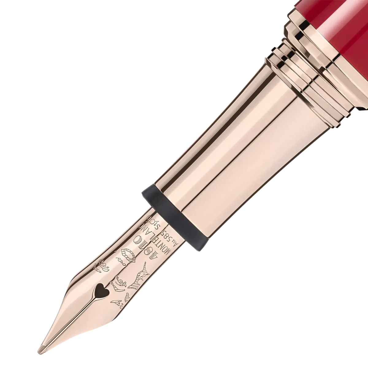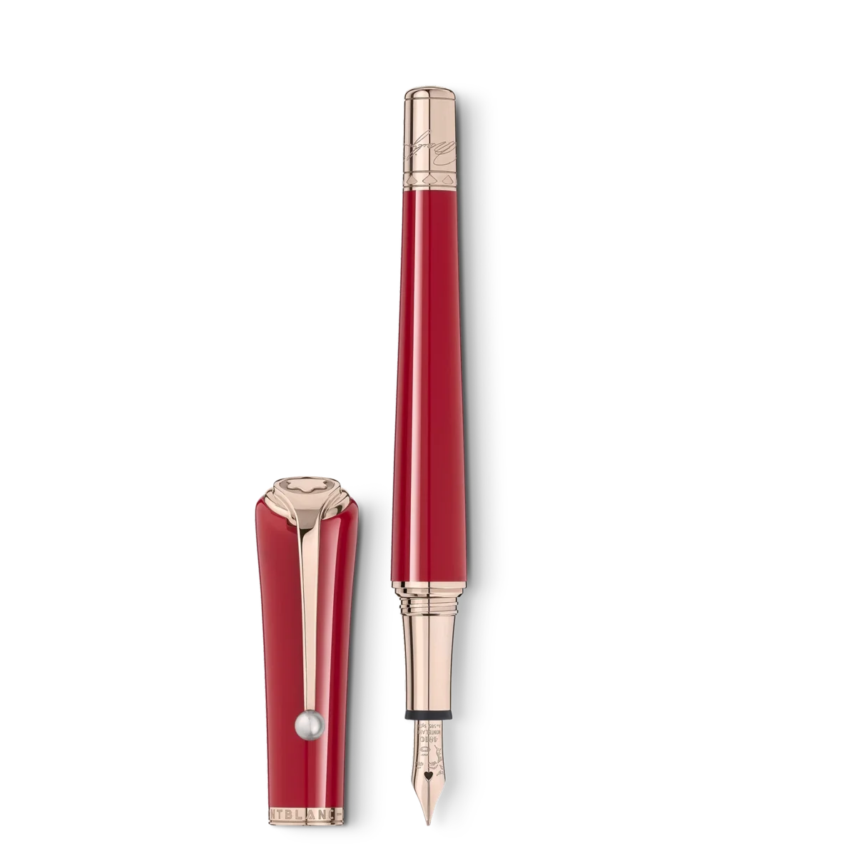 Marilyn Monroe (1926 – 1962) has become an American cultural icon. celebrated by many all over the world. The actress was a prodigy of Lee Strasberg and one of the most popular sex symbols of the 1950s. To this day she continues to inspire women all over the globe. ensuring her status as a culture and style icon. The design of the Marilyn Monroe Special Edition was inspired by the iconic Ferragamo high-heels. which Marilyn wore. reflecting her femininity and sensuality. The color of the writing instrument refers to her signature lipstick (Ruby Tuesday by Max Factor). The shape of the clip with pearl recalls her jewelry and love of pearls.