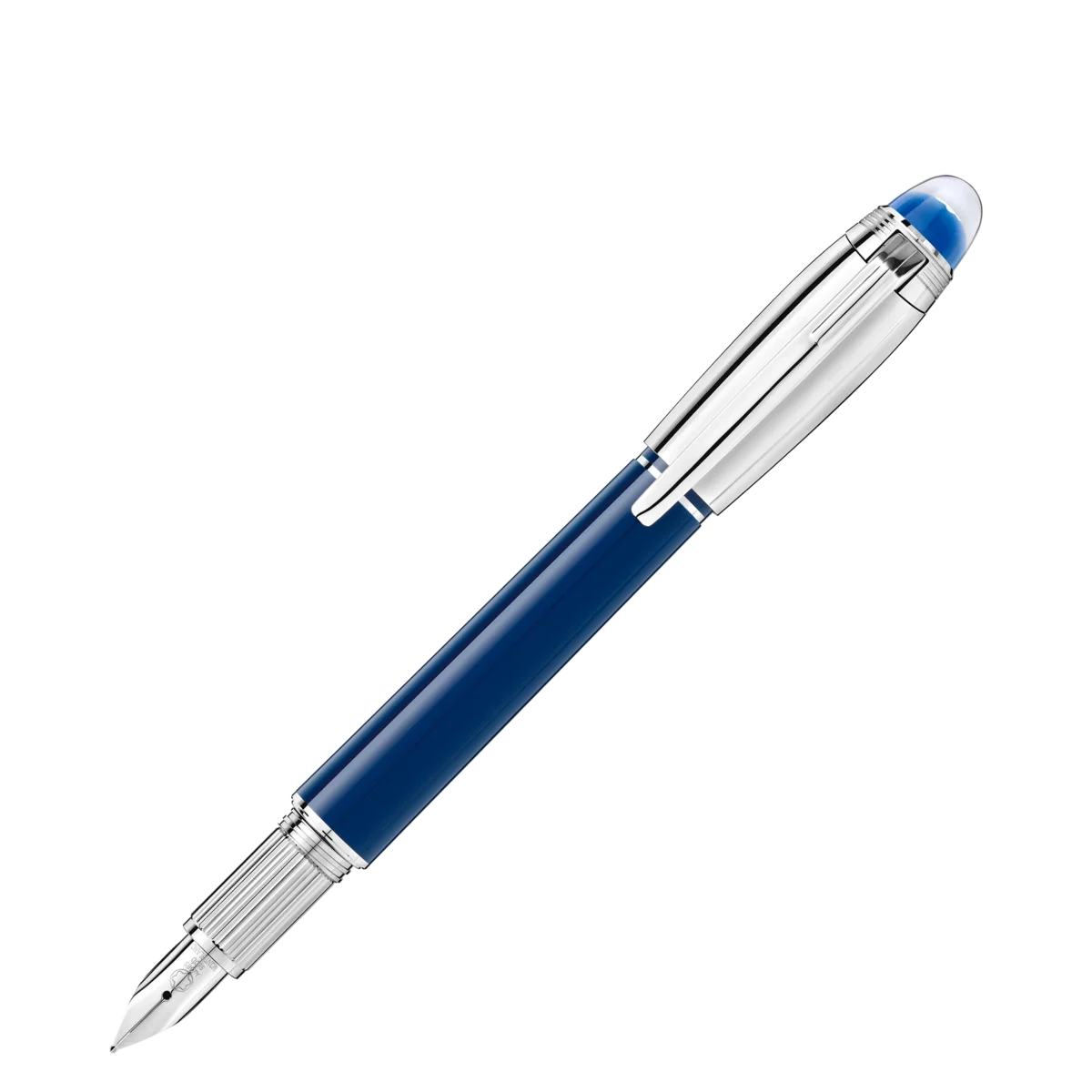StarWalker Blue Planet is about walking amidst the stars, exploring the cosmos and foreign galaxies, and being part of one of the most mysterious and powerful adventures humankind has ever undertaken: space exploration. Zooming in on our planet Earth, we take inspiration from water, the source of life. The StarWalker emblem technology features a blue translucent dome with a star floating on top, which represents the Earth emerging above the lunar horizon as seen from the moon. The StarWalker Blue Planet Doué Fountain Pen comes with a platinum-coated cap and fittings and a blue precious resin barrel. The fountain pen is handcrafted with a rhodium-coated Au585 /14 K gold nib.