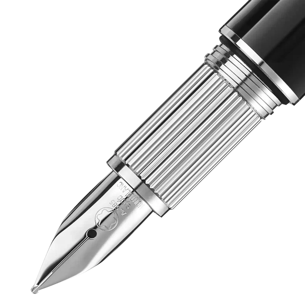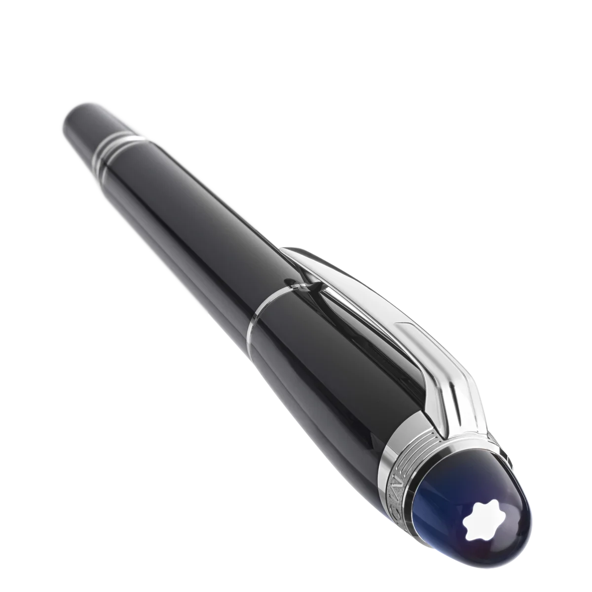 The new StarWalker is about walking amidst the stars. It’s about exploring the cosmos and foreign galaxies. about being part of one of the most mysterious and powerful of humankind’s adventures: space exploration. The collection’s new design celebrates the immense emotion. described by all space travelers. of seeing our blue planet floating in the vast expanse of space. The unique StarWalker emblem technology features a blue translucent dome beneath the Montblanc emblem. reminiscent of the Earth emerging above the lunar horizon. The StarWalker Precious Resin comes with platinum-coated fittings and a black precious resin barrel and cap. The fountain pen is hand-crafted with a rhodium-coated Au585 /14 K gold nib.