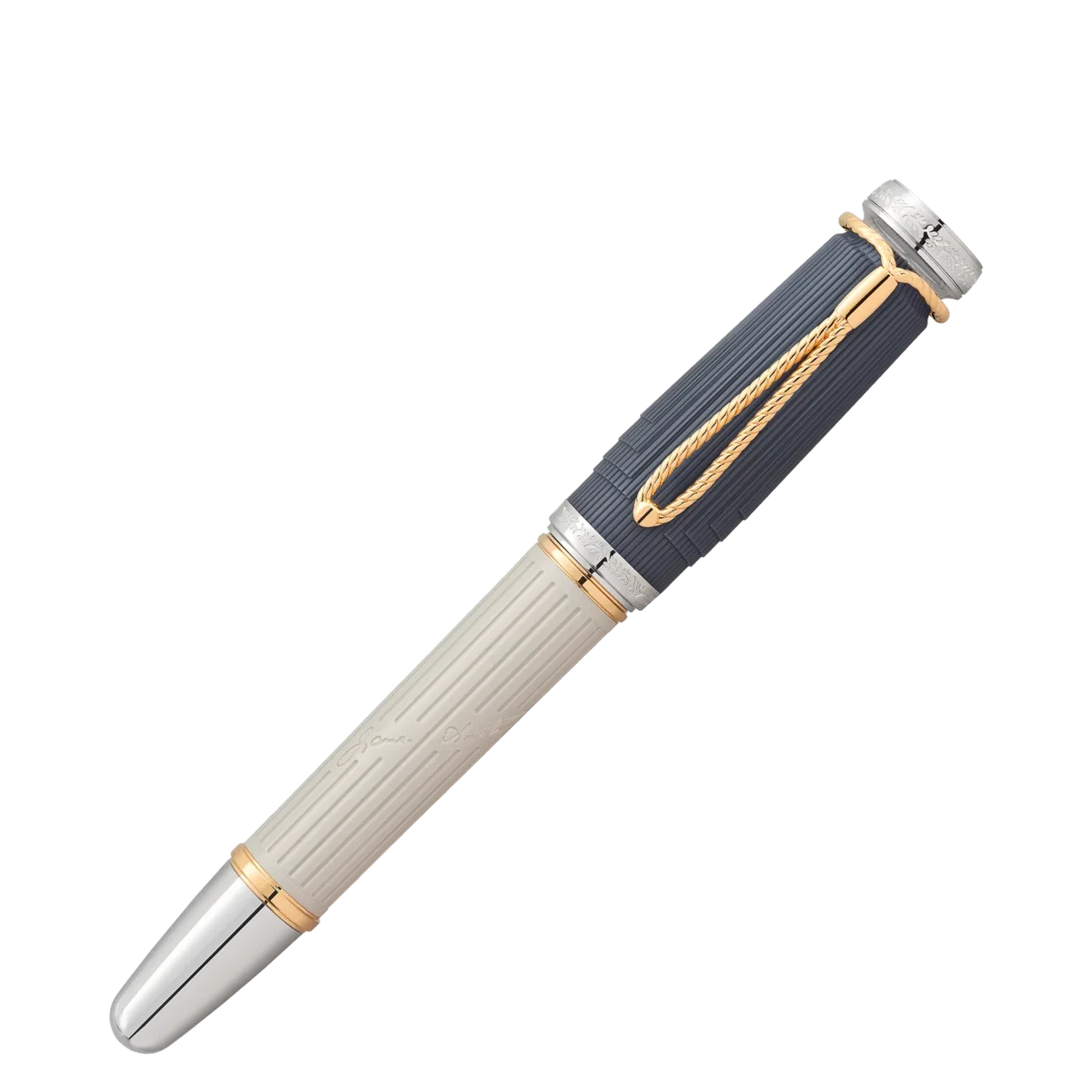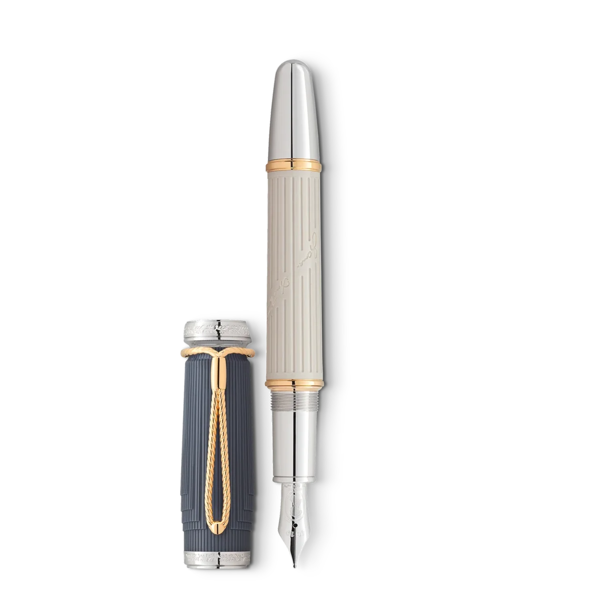 Few authors in literary history have had the ability to craft dialogue and bring characters to life as elegantly, ironically and astutely as British author Jane Austen. Montblanc has created the Writers Edition Homage to Jane Austen to celebrate one of English literature’s most famous authors.This edition brings to life the Regency era, when noble country estates were the scene of great parties held for the purpose of cultivating social relationships and forging marriage alliances. The fluting of a classical column embellishes the elegant sandstone-grey resin barrel, along with Jane Austen’s signature. The contrasting grey-blue cap references the type of double-collared Regency coat typically worn by gentlemen such as Mr Darcy in Pride and Prejudice. Gold-coated rings on the barrel and platinum-plated fittings add finishing touches to the design. The engraving of the Roman numerals XLIII on the cap ring are a reference to the chapter of the novel in which Elizabeth Bennet sees Mr Darcy’s estate for the first time.The title page of her novel Sense and Sensibility, published in 1811, merely declared the work to have been written ‘By a Lady’. This statement of authorship adorns the cap top of the Writers Edition Homage to Jane Austen Limited Edition, along with the Montblanc emblem. The silhouette of the writing instrument itself resembles a wax seal stamp.The clip is every bit as unusual as the cap. Shaped like a braided cord with a drawstring closure, it resembles that of a ‘reticule’, a type of bag used by women around 1800 to carry their powder, mirror and the indispensable pocket handkerchief.The only known silhouette of Jane Austen, which shows her delicate features, is immortalised as an artistic engraving on the handcrafted, rhodium-coated solid Au 750 gold nib.
