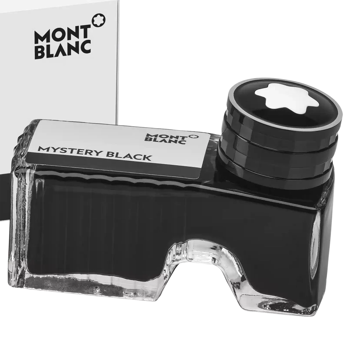 Montblanc Ink Bottle, Mystery Black – 60mlInk bottle with front compartment for emptying residue into.