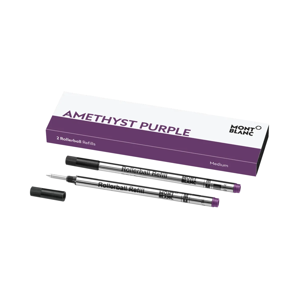 Montblanc Rollerball Refills, Amethyst Purple.Suitable for all Montblanc Rollerball/Fineliner pens except Meisterstück LeGrand, Montblanc M and Heritage collection capless rollerballs. Packaging units = 2 Refills. M = Medium