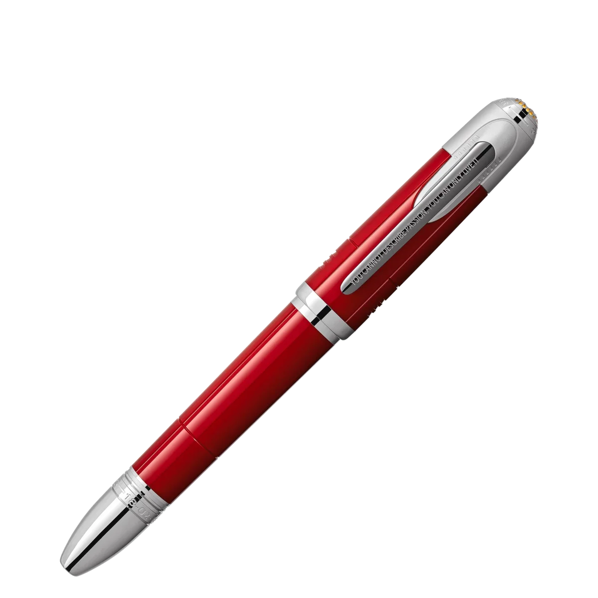 In 2021. Montblanc pays tribute to the visionary Enzo Ferrari: both motor racing driver and entrepreneur. he founded the legendary Scuderia Ferrari and established a global automotive empire whose name has become synonymous with superb quality and a passion for speed.Made from red precious resin. the edition symbolizes the beginning of Enzo Ferrari´s passion for motor racing. Its color is inspired by “Rosso 70 Anni”. a special red color representing various iconic red tones throughout the years. first developed to celebrate the 70th birthday of the Scuderia Ferrari.The cap top is crowned with a Montblanc emblem embedded in a metal grid on a yellow surface. paying homage to Ferrari’s birthplace. Modena Italy. The prancing horse. the famous emblem of Ferrari cars. is depicted on the back of the cap. The metal clip is adorned with a famous quote by Enzo: “You cannot describe passion. you can only live it.” The cone shows two important dates in the early career of Enzo Ferrari.