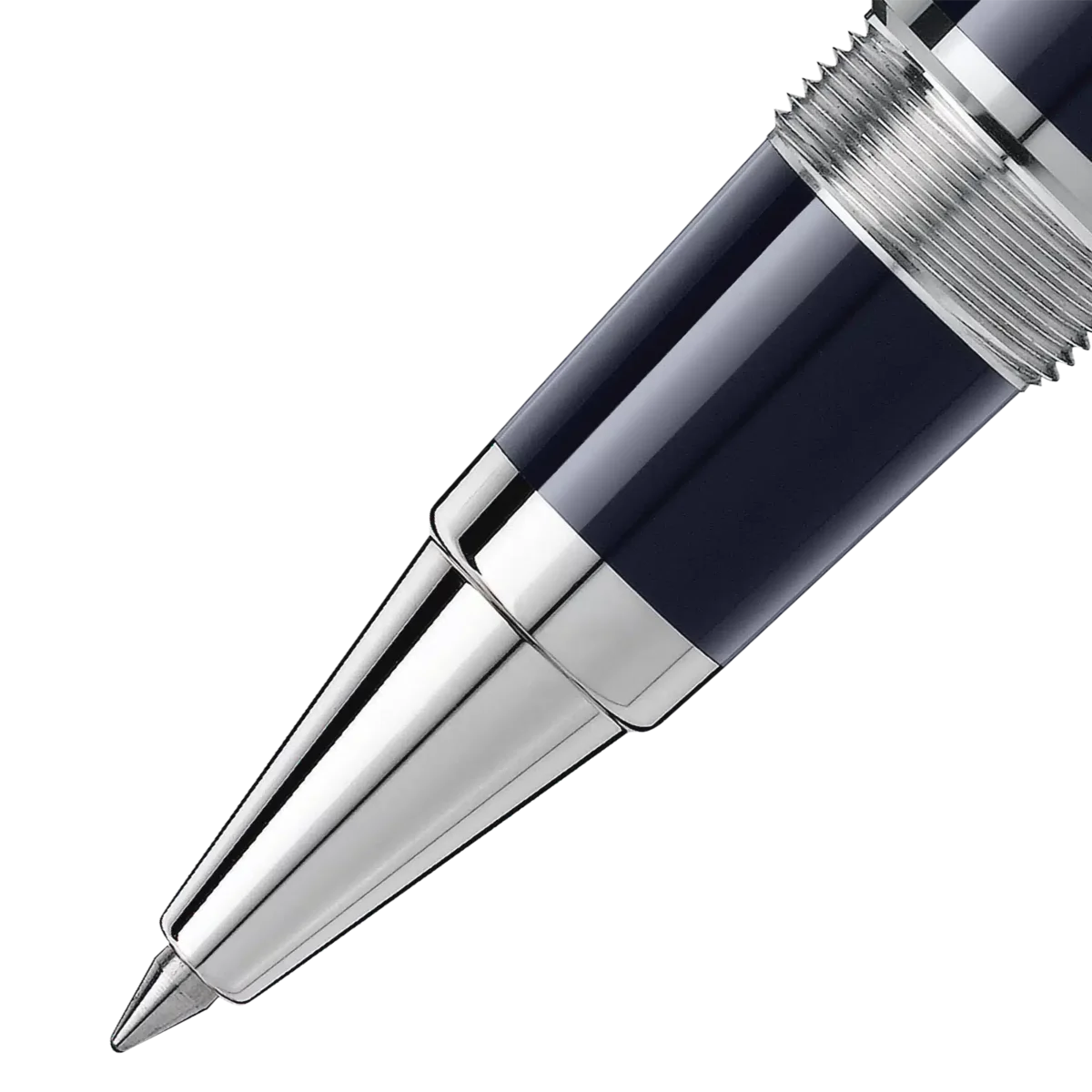Commemorating one of the most revered figures of modern history. the Special Edition John F. Kennedy makes symbolic references to the life of J.F. Kennedy in subtle design details. The blue precious resin refers to both Kennedy’s time in the U.S. Navy and the famous Ivy League style. His initials “JFK” are engraved on the platinum-coated clip. and the three platinum-coated cap rings stand for Kennedy’s three brothers. The Special Edition is crowned by the Montblanc emblem in precious resin.