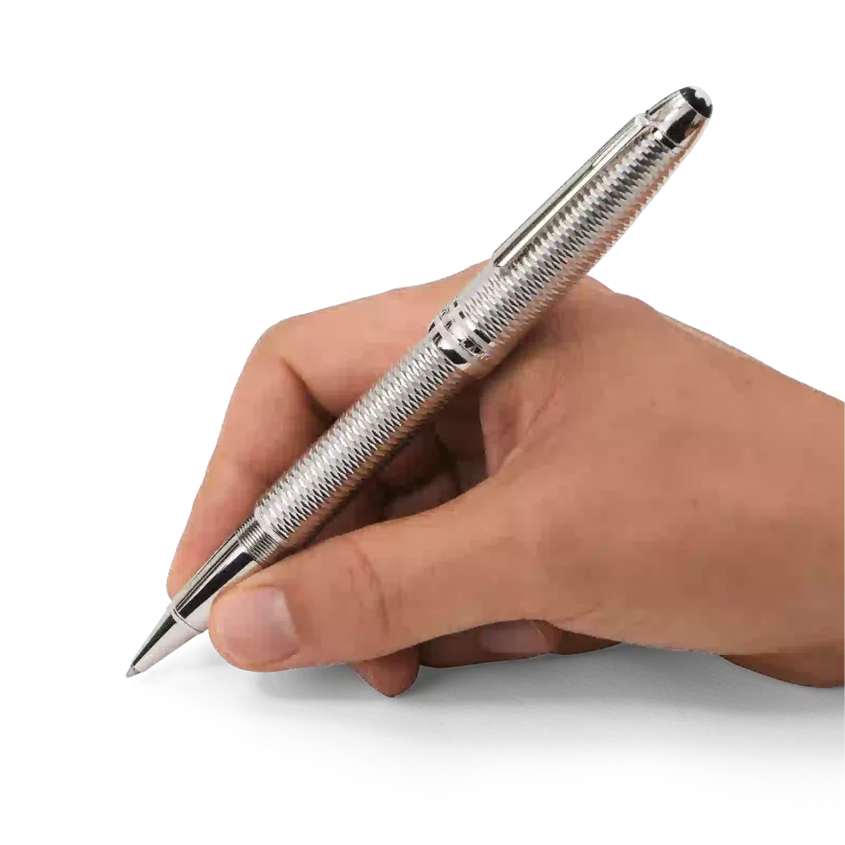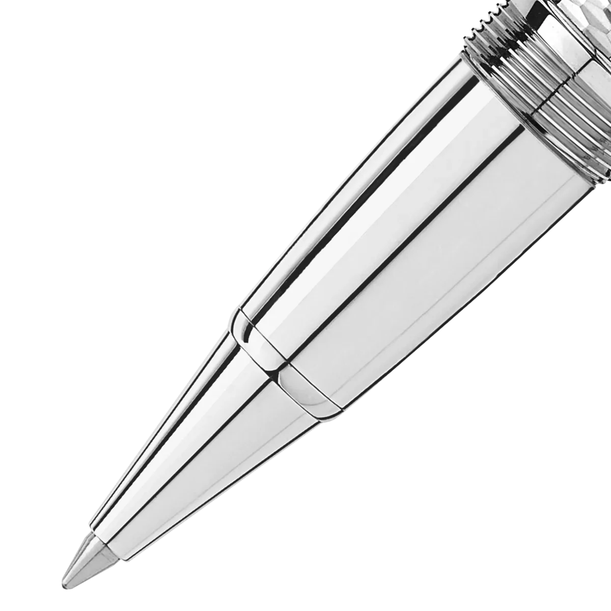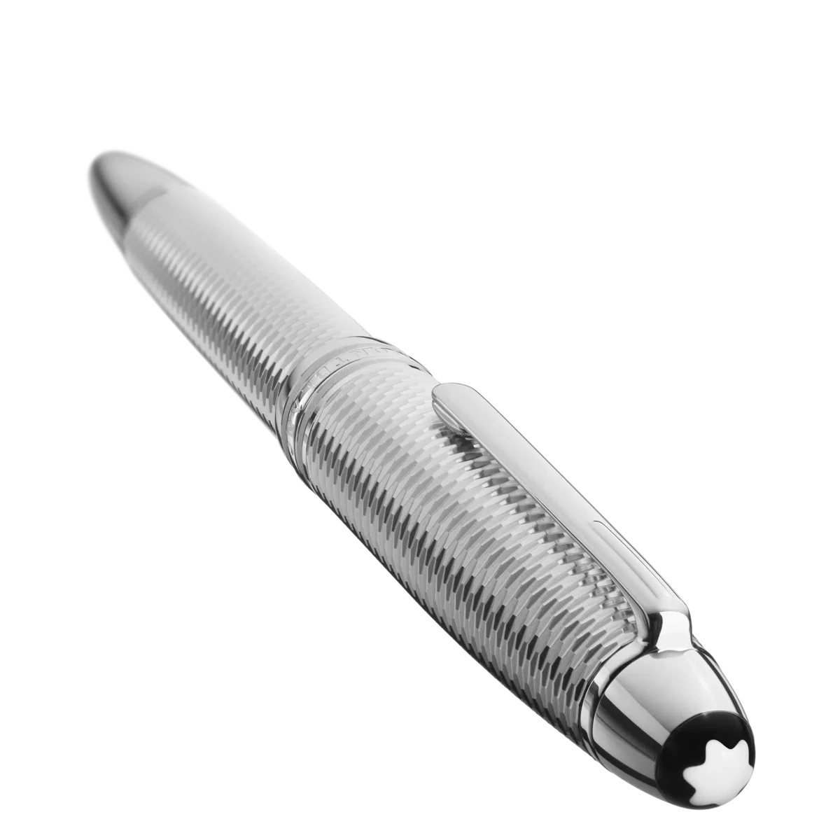 The Meisterstück Solitaire Geometric Dimension was born of the desire to unite Montblanc’s classic design with unique materials. This writing instrument, engraved with a three-dimensional geometric pattern with optical effect in a sophisticated platinum tone, features a platinum-coated clip and three platinum-coated rings embossed with the Montblanc brand name. Finished with the Montblanc emblem, it appeals to one’s individuality.