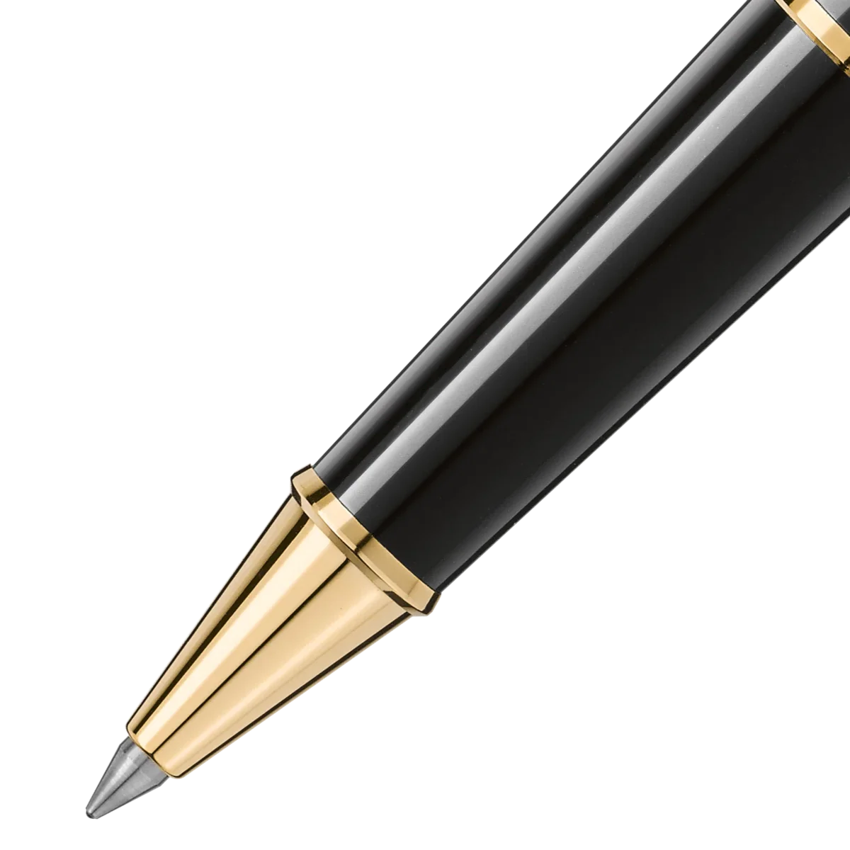 The Meisterstück Classique in deep black precious resin with gold-coated details and surmounted by the white star emblem evolves into a distinctive design icon.