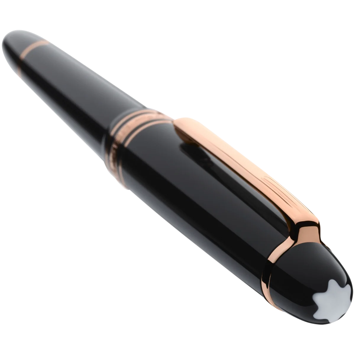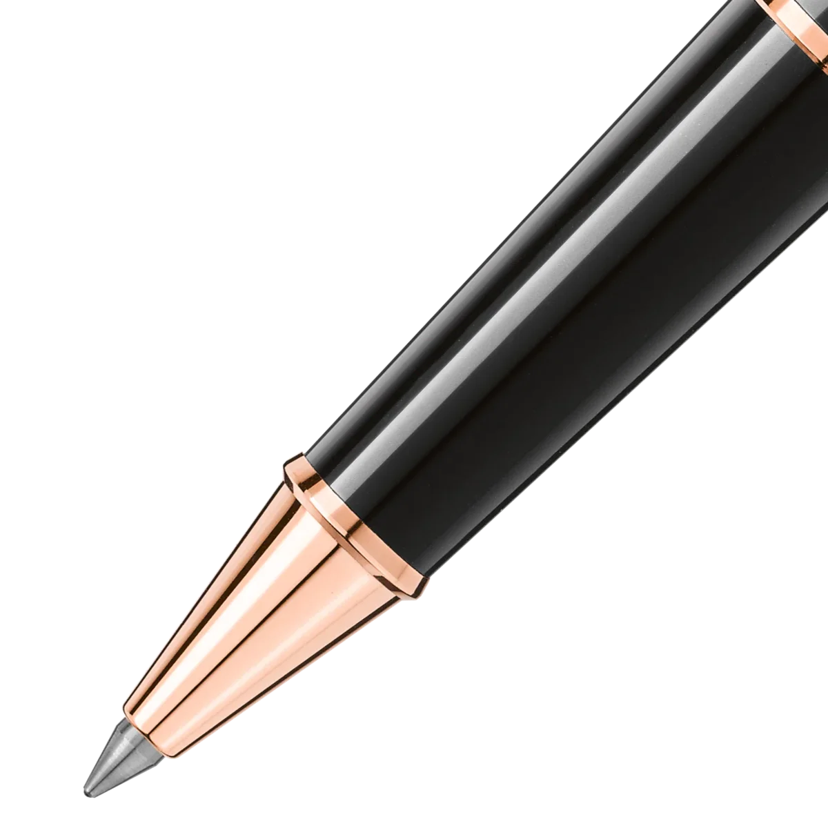 Montblanc Meisterstück Classique Rose Gold-Coated collection is a design that writes history. Introduced in 1924, a word meaning “Masterpiece”, the Meisterstück has become the symbol for high quality luxury writing. The cap and barrel are crafted in black precious resin featuring the iconic white Montblanc emblem inlaid in the cap top.