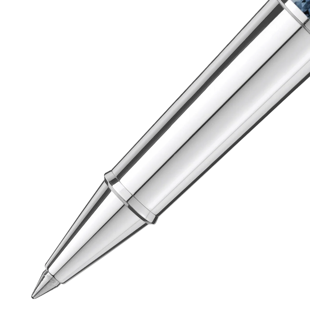 The Meisterstück Solitaire Doué Blue Hour Classique introduces itself as a precious, blue lacquered Solitaire product with platinum-coated fittings. The magical hour between daylight and night – the Blue Hour – creates a smooth contrast and breathtaking mood, which served as design inspiration. The hexagon pattern on the barrel reflects the refraction of lights and night traffic in urban cities.