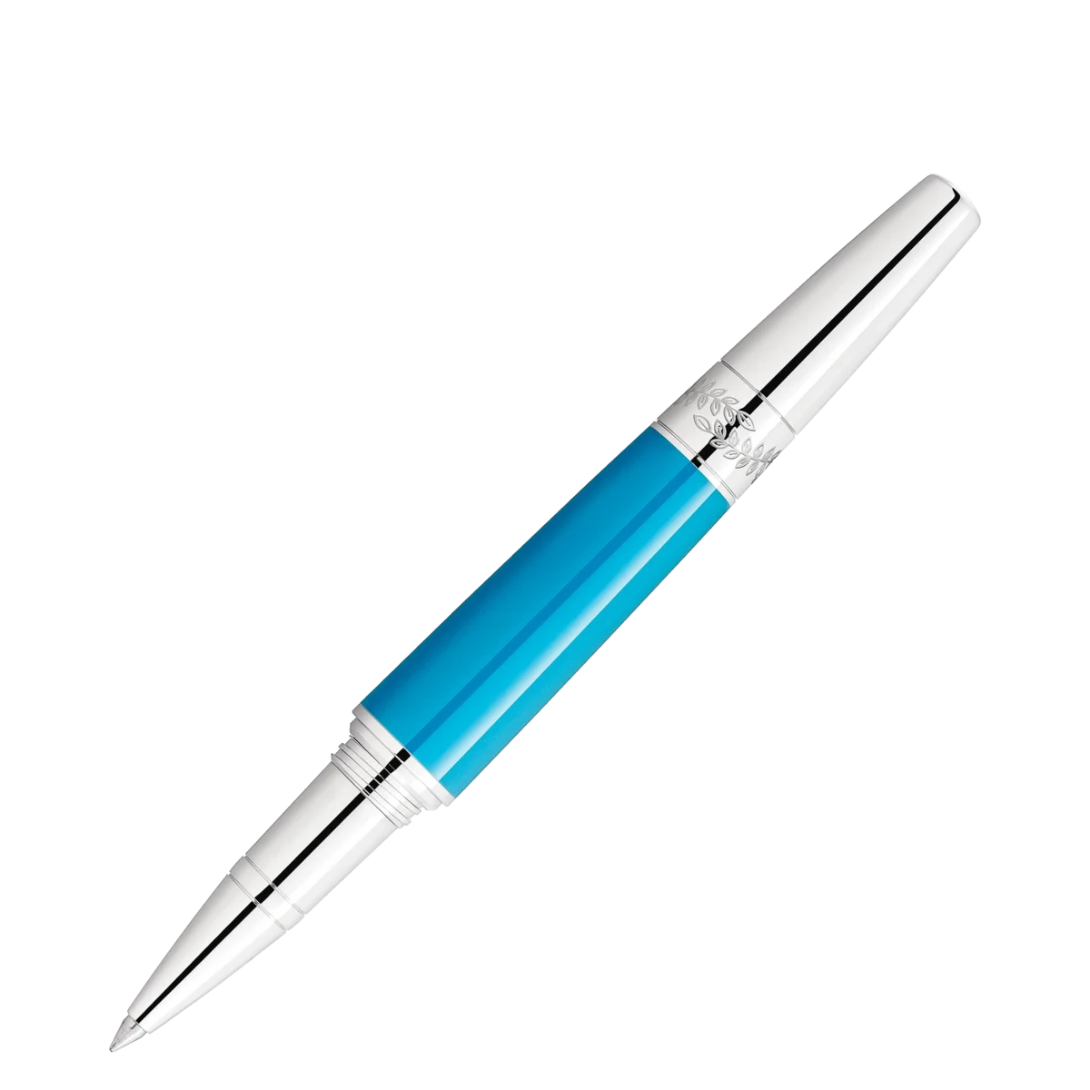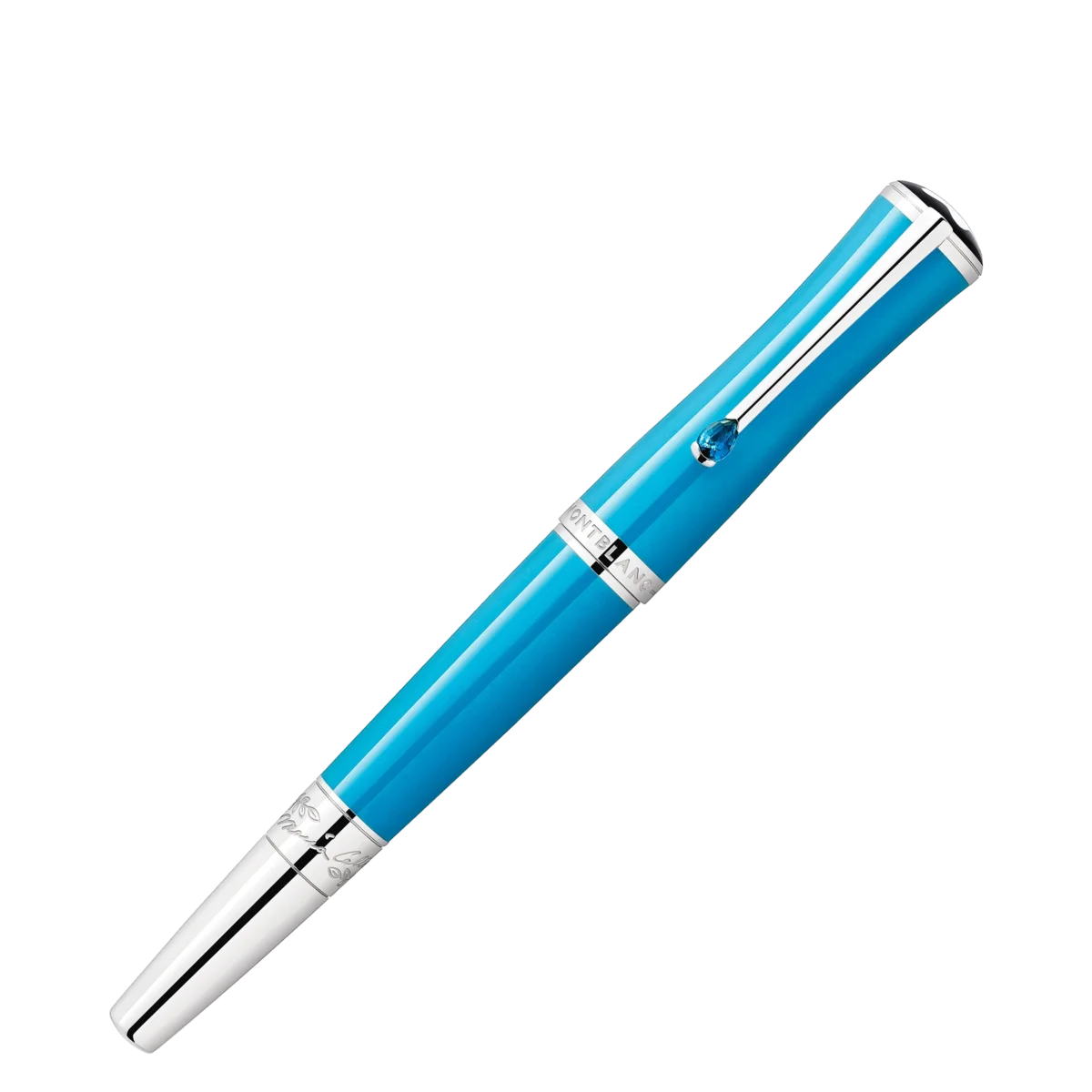 The Montblanc Maria Callas Special Edition Turquoise-Coloured is dedicated to one of the most charismatic sopranos of the 20th century and appreciated style icon. With her talent, passion and personality, she embodied a certain ideal of the operatic diva. In some of the world’s greatest opera houses, from La Scala in Milan, to the Paris Opera, to New York’s Metropolitan Opera, she was known as “La Divina” – the divine one.The edition highlights one of her favorite colors, turquoise, in the precious resin of the cap and barrel, while reflecting Maria Callas’s graceful beauty in its slender, elegant silhouette. In memory of her sea-encircled Greek homeland, the platinum-coated clip is decorated with a synthetic stone whose color is reminiscent of the radiant turquoise blue of the Aegean Sea. A costume detail from one of her recognizable bel canto roles, Bellini’s “Norma”, is reflected in a pattern of laurel leaves surrounding the platinum-coated cone of the edition along with the embossed signature of the celebrated soprano.