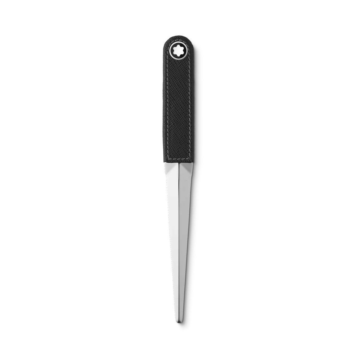 Montblanc Letter Opener in steel, ruthenium plated with inlay in black soft leather.
