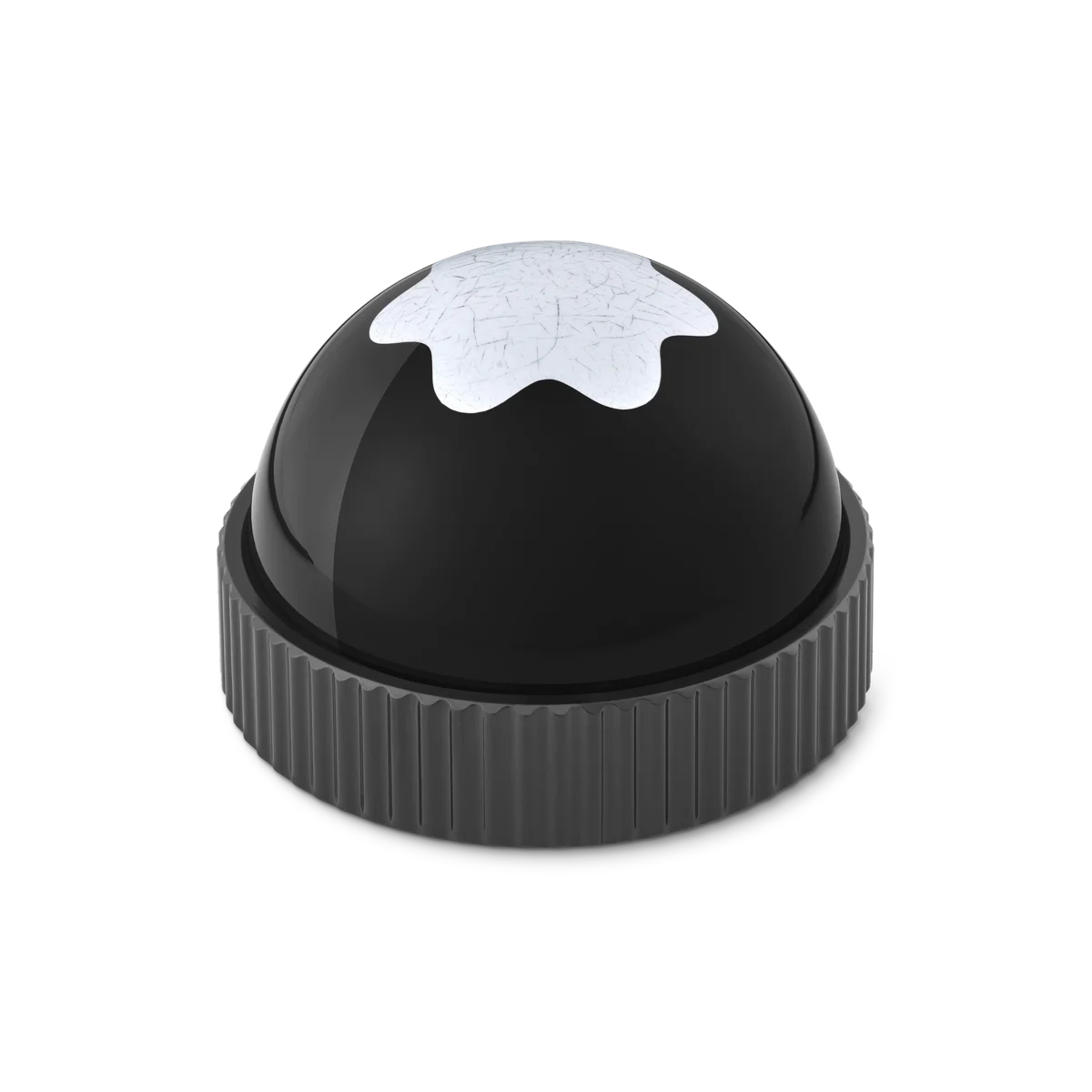 The black paper weight with the white Montblanc emblem on top. It is inspired by the cap top of the old writing instruments. The base is made of black velvet with Montblanc logo debossed.