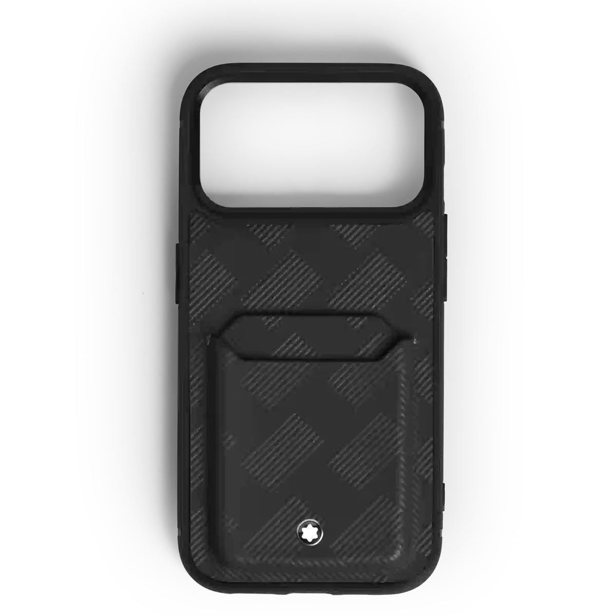 Blending sporty appeal with refined elegance, the Extreme 3.0 phone cover is designed for the Apple iPhone® 17 Pro. Crafted from durable black cross-grain leather, it offers robust protection while featuring two slip pockets for cards on the back.
