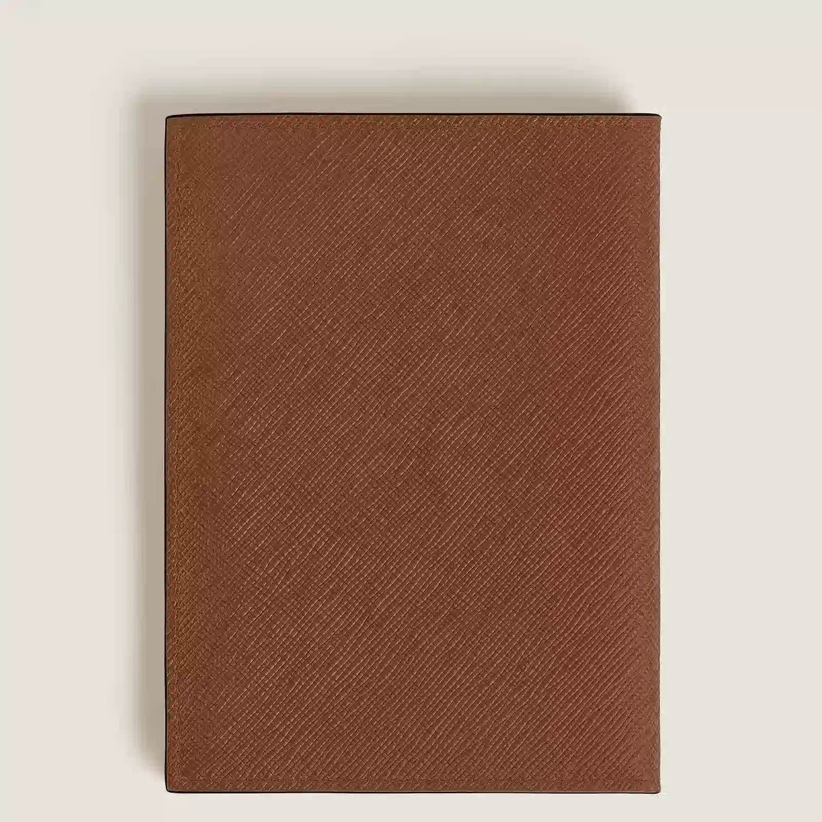 A refined travel companion, this passport holder is crafted from embossed sartorial leather in an elegant fauve colour. Designed for functionality and style, it securely holds your passport while offering two slots for credit cards, making it an essential accessory for sophisticated travelers.