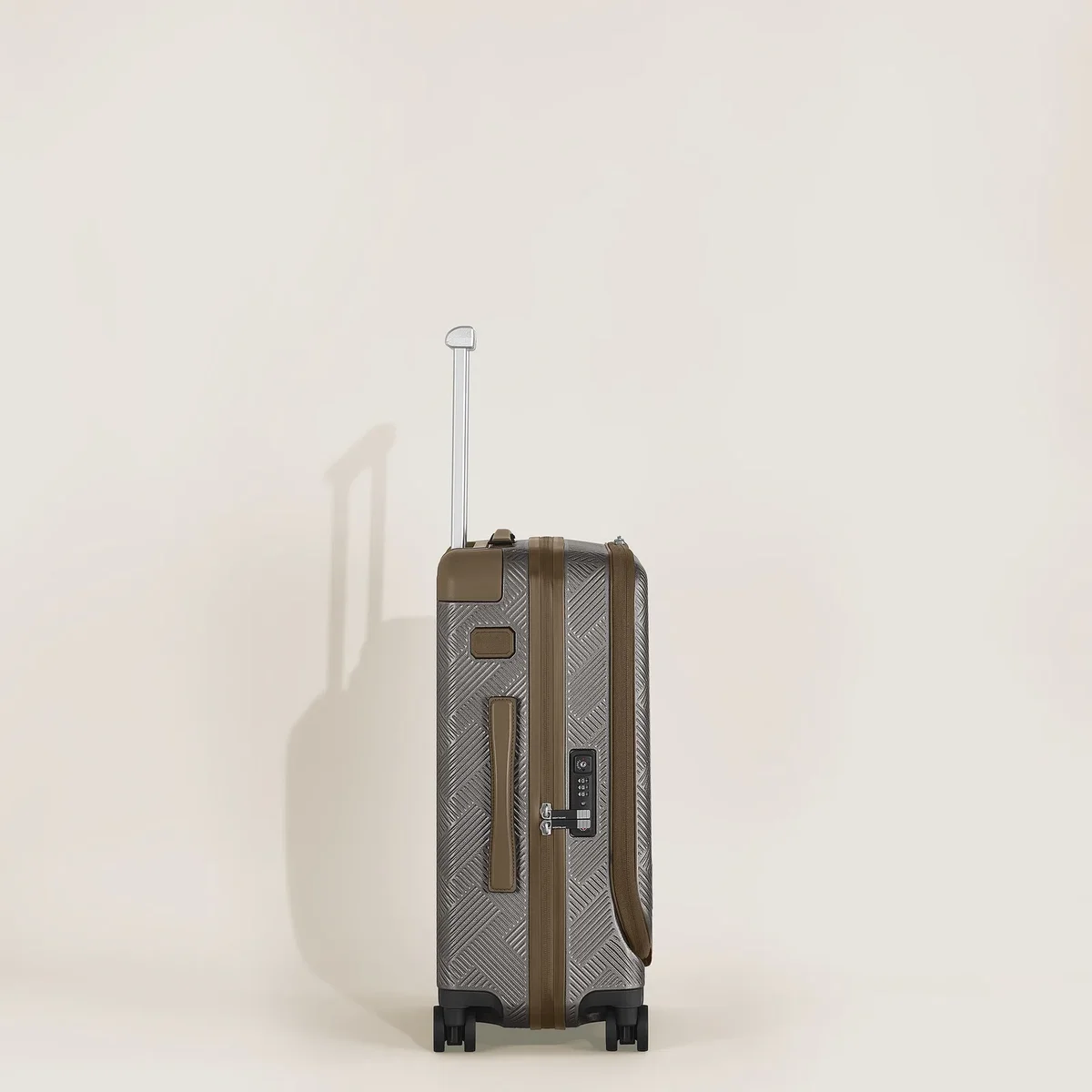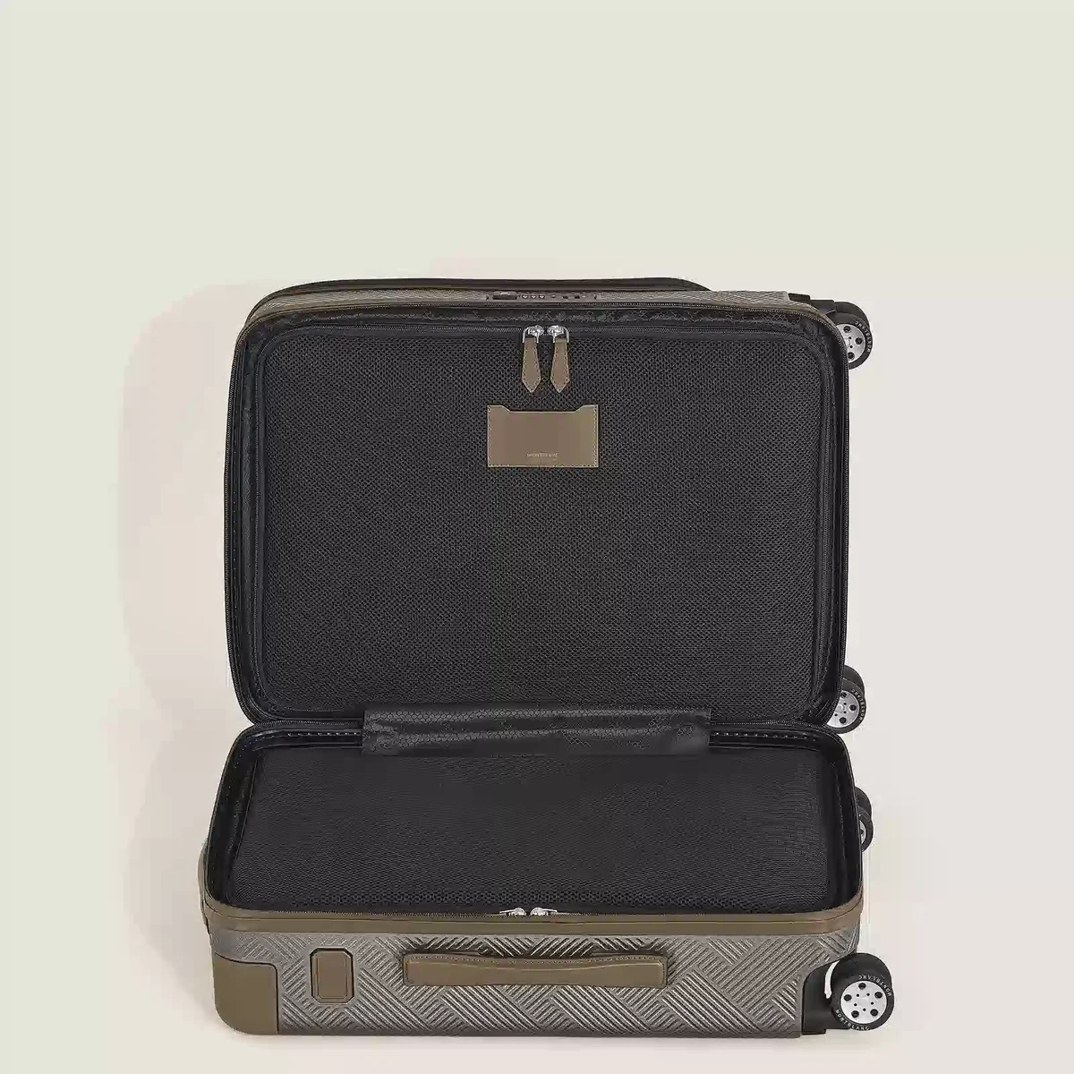 Embark on your next adventure with the upgraded #MY4810 trolley with a front pocket. Crafted in silver polycarbonate, this travel companion is lightweight yet robust. The interior includes zipped compartments on both sides and two travel organisers, providing a streamlined packing experience. The quiet running wheels and comfortable leather handles with a multi-stop system make it easy to manoeuvre it, while the TSA lock adds extra security. The 38 x 55 x 23 cm trolley is generally accepted as a cabin bag, but remember to verify your airline’s luggage policies to ensure a hassle-free trip.