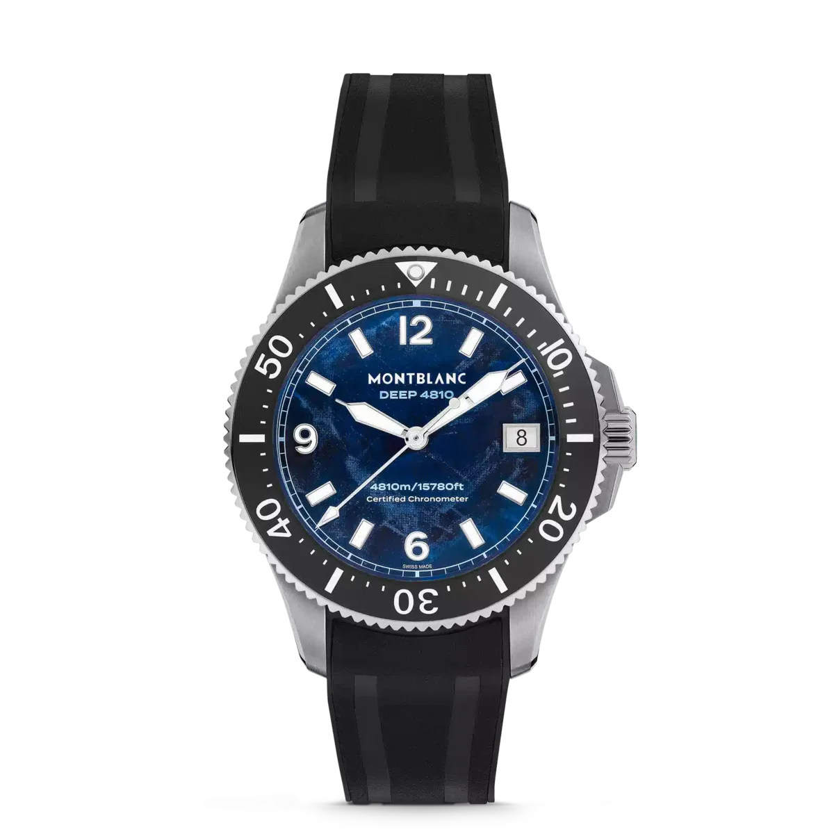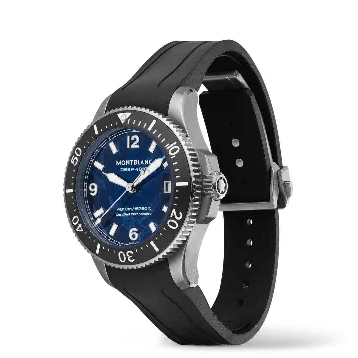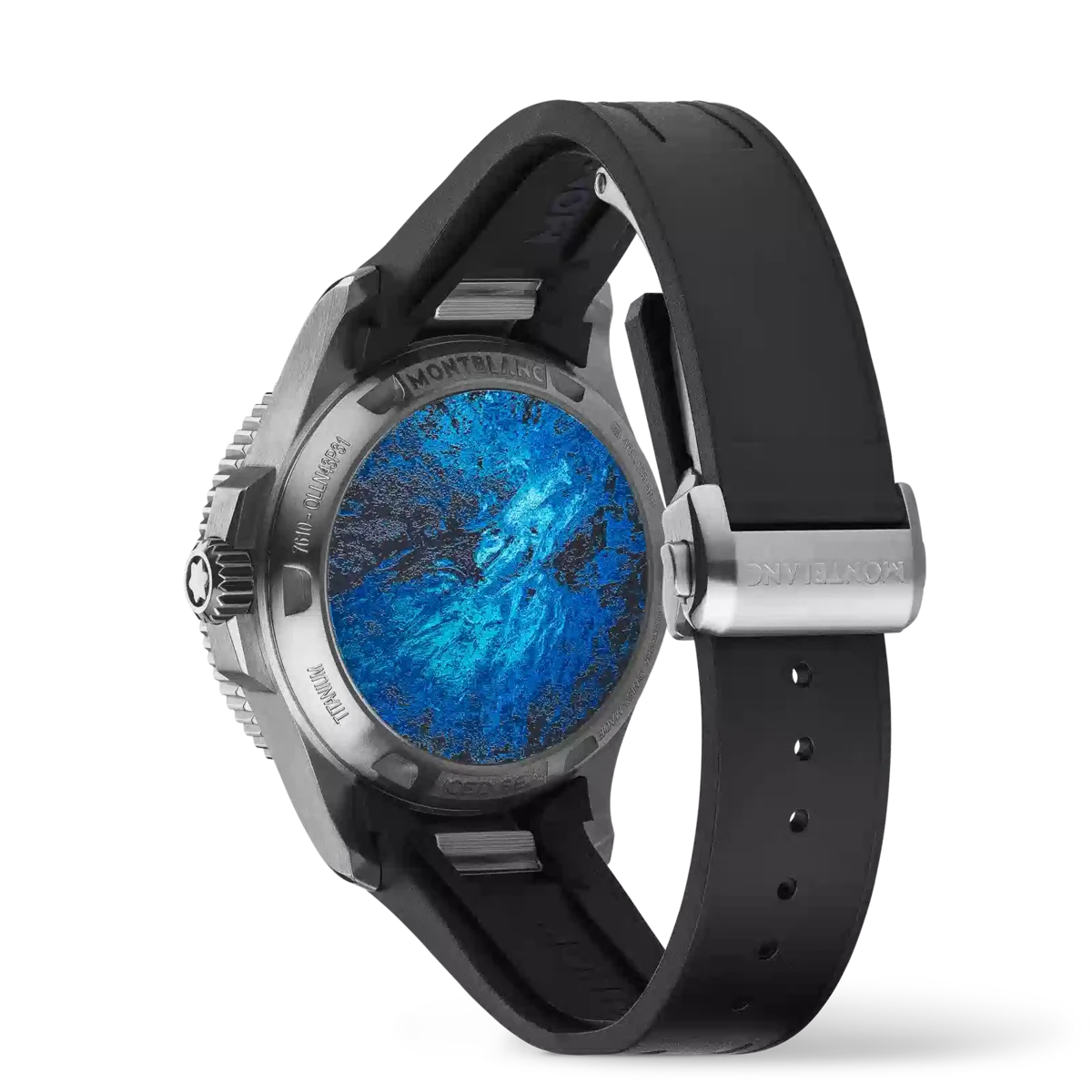 After having strived for the greatest heights, Montblanc explores the marine universe at 4810 meters below sea level with the Montblanc Iced Sea 0 Oxygen Deep 4810. The glacier pattern dial is inspired by the Mer de Glace – Sea of Ice – the main glacier of the Mont-Blanc Massif. Its texture was achieved using an almost-forgotten ancestral technique called gratté-boisé. Housed in a 43 mm titanium case totally devoid of oxygen with a shield protecting the screw-down crown, this diving watch comes with a case back adorned with a 3D engraving of the view divers see when diving underneath the ice. The timepiece is powered by Montblanc’s Manufacture, COSC-certified, automatic MB 29.29 movement, with approx. five days of power reserve and conforms to the ISO 6425 norm for scuba diving. It is water-resistant to 4810 meters.