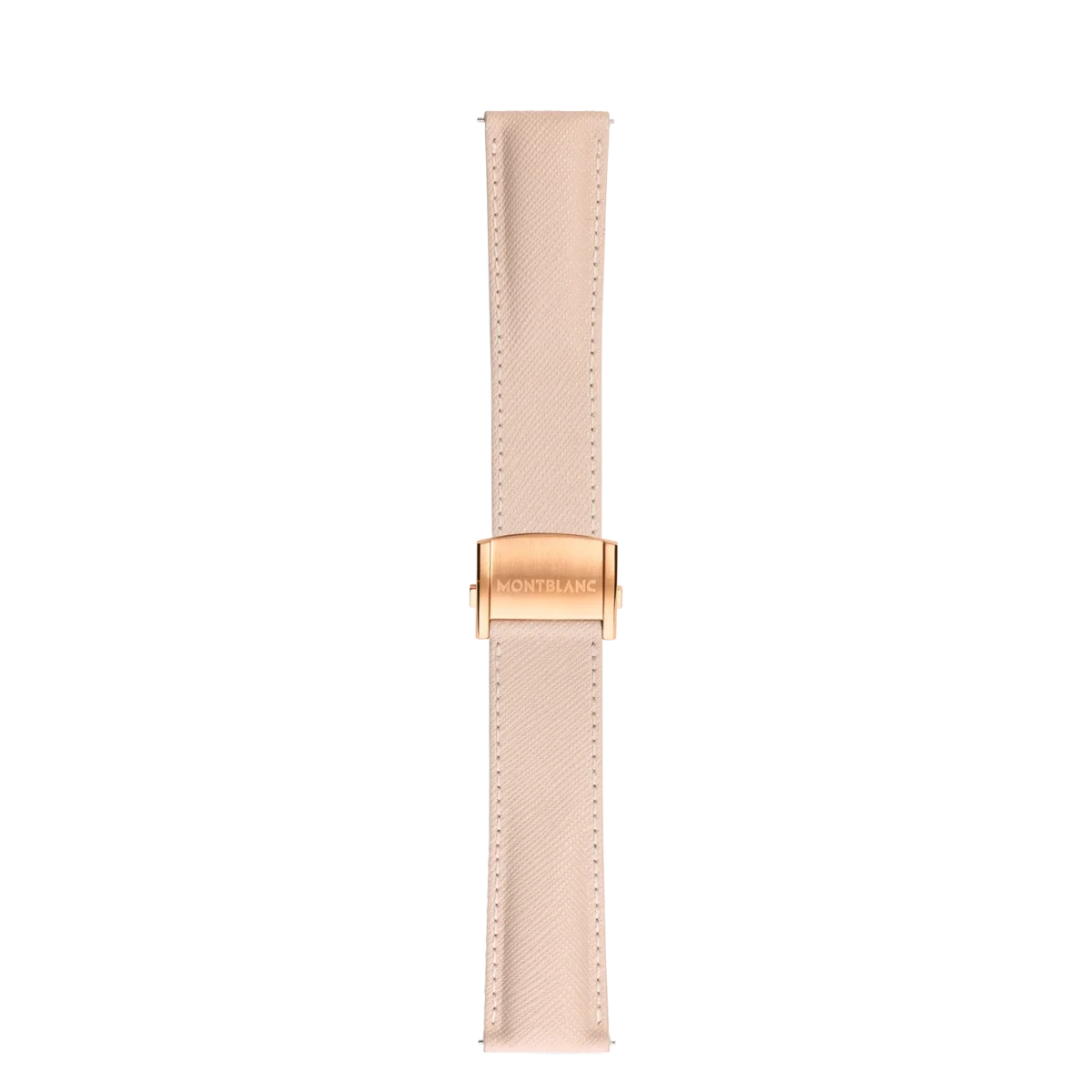 22 mm cream saffiano-print calfskin leather strap with adjustable gold-coloured folding clasp made of stainless steel. Compatible with all Montblanc Summit smartwatches.